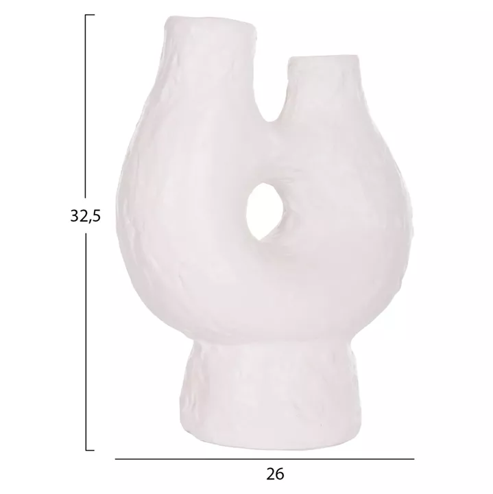 The set of 2 handmade NAMENTIS decorative table vases will give a new feel to any space. They are made entirely of terracotta with a rough texture following the modern trend in interior decoration. The slightly larger one is in a MAROON RED color, and the slightly smaller in WHITE color.