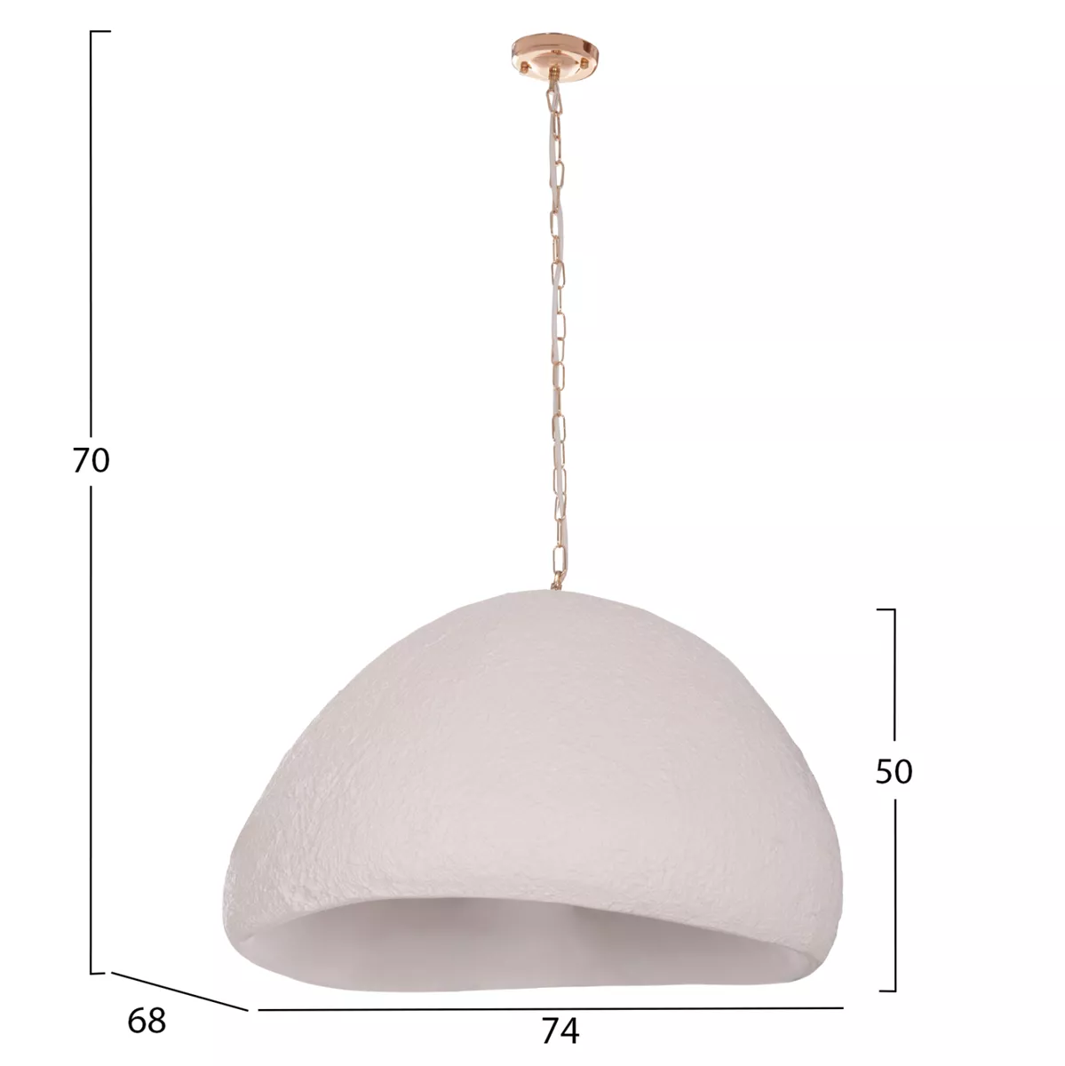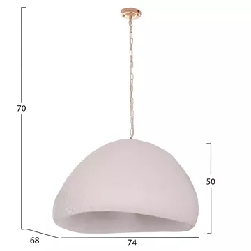 Discover our new, original, and imposing pendant single light lamp JAYLEN, and complete or renew your decoration. Made of fiber cement in WHITE color and an aluminum hanging chain, it is a luxurious proposal for spaces with a similar aesthetic.
