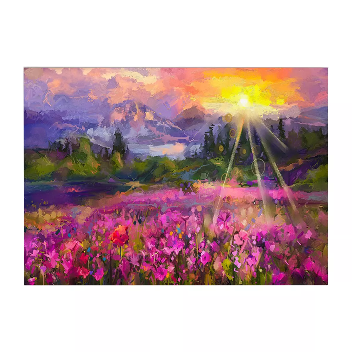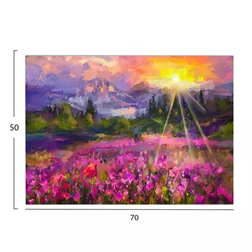A wall painting transforms the way we perceive space. So, decorate your space with the new GOBI wall painting series! This painting depicting a blooming field has been implemented on printed canvas with a wooden frame.
