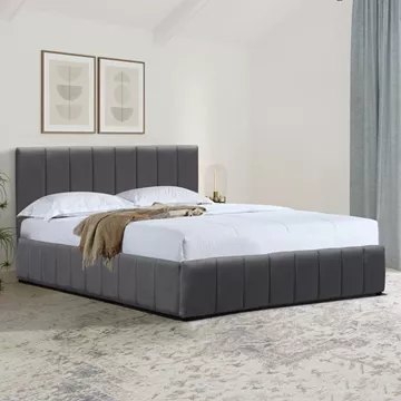 The elegant and highly functional Snuggle bed is an ideal addition to any bedroom, combining comfort with practical storage. Its sturdy construction, upholstered with high-quality velvet, provides a modern and refined aesthetic, while the vertical stitching on the headboard and around the bed base adds a discreet yet impressive detail.