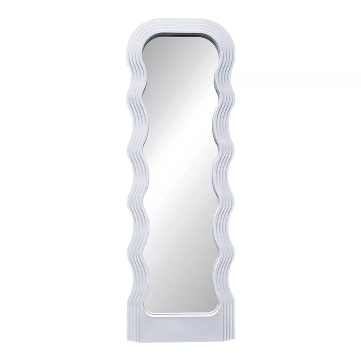 Its unique, wavy design adds a modern and playful aesthetic, making it ideal for bringing visual interest to any room. The full mirror surface offers practicality, while its distinctive frame also serves as a decorative element.