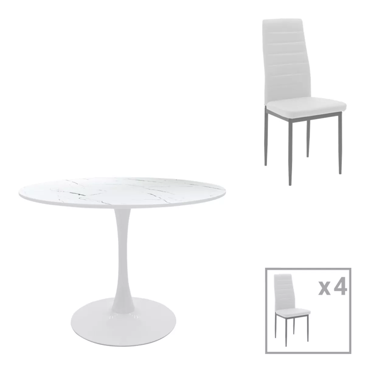 Dining table Balou-Parker pakoworld set of 5 pcs white D120x73cm