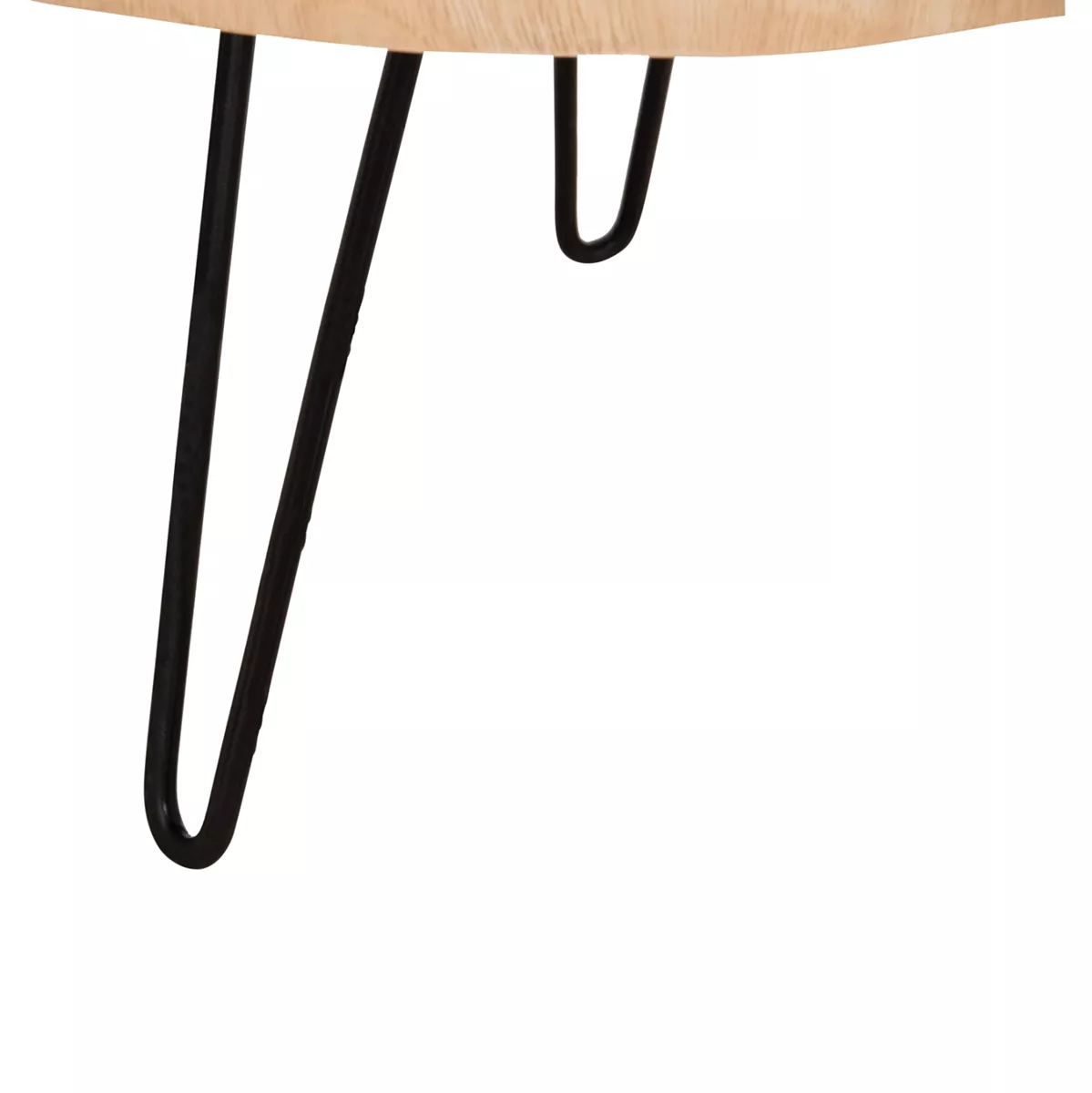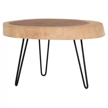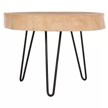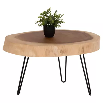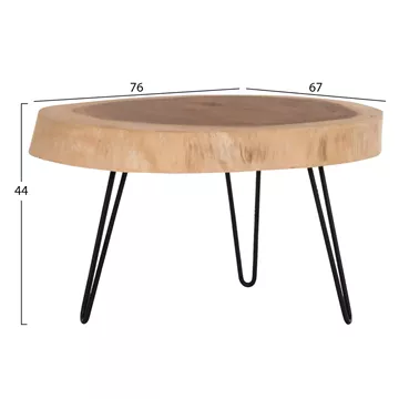 SERVON is a coffee table with a 9 cm thick top made of solid SUAR wood in a NATURAL color. The shape of the tabletop is irregular (approximately oval) and rests on 4 BLACK metal legs. The rustic essence gives a timeless and warm feeling to your space. It is the ideal choice for homes but also for hotels or restaurants etc. And always at the lowest price on the market.