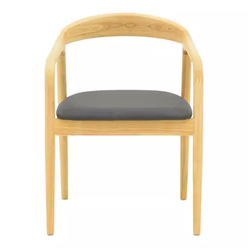 Hogie dining armchair, a refined piece that embodies the timeless aesthetic of Scandinavian modern design. Featuring a gracefully curved wooden frame and a minimal silhouette, it perfectly balances simplicity and warmth. The ergonomically designed backrest follows the natural curve of the spine, offering ideal lumbar support.