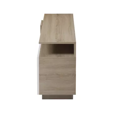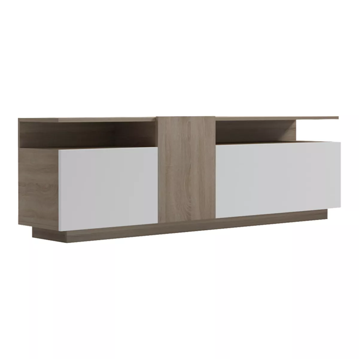 Elevate your living room with the stylish and functional Vendora TV stand, expertly crafted to combine aesthetics with everyday convenience. Its modern design, featuring a warm Sonoma wood tone paired with white accents, makes it a standout addition to any contemporary home.