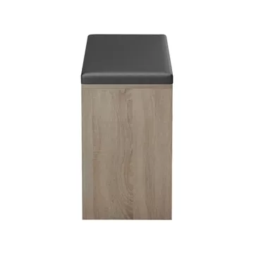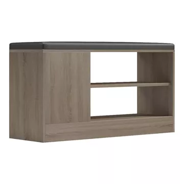 Organize your entryway with style and functionality using the practical Deboule shoe cabinet that also doubles as a bench. The combination of warm wood tones with the dark cushioned seat makes it a perfect addition to any home, offering both storage and comfort.
