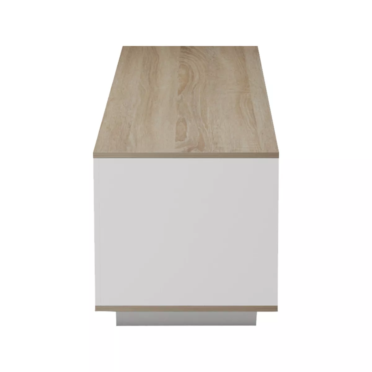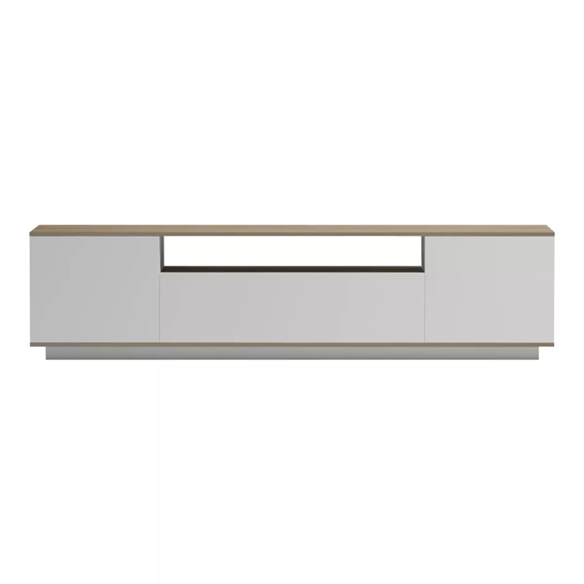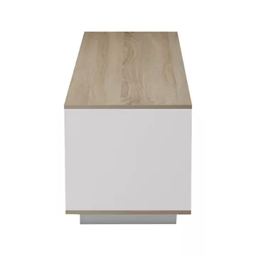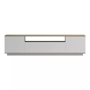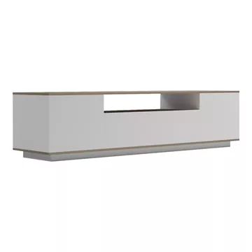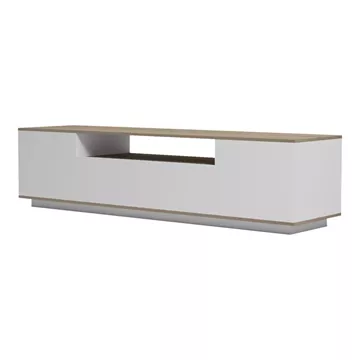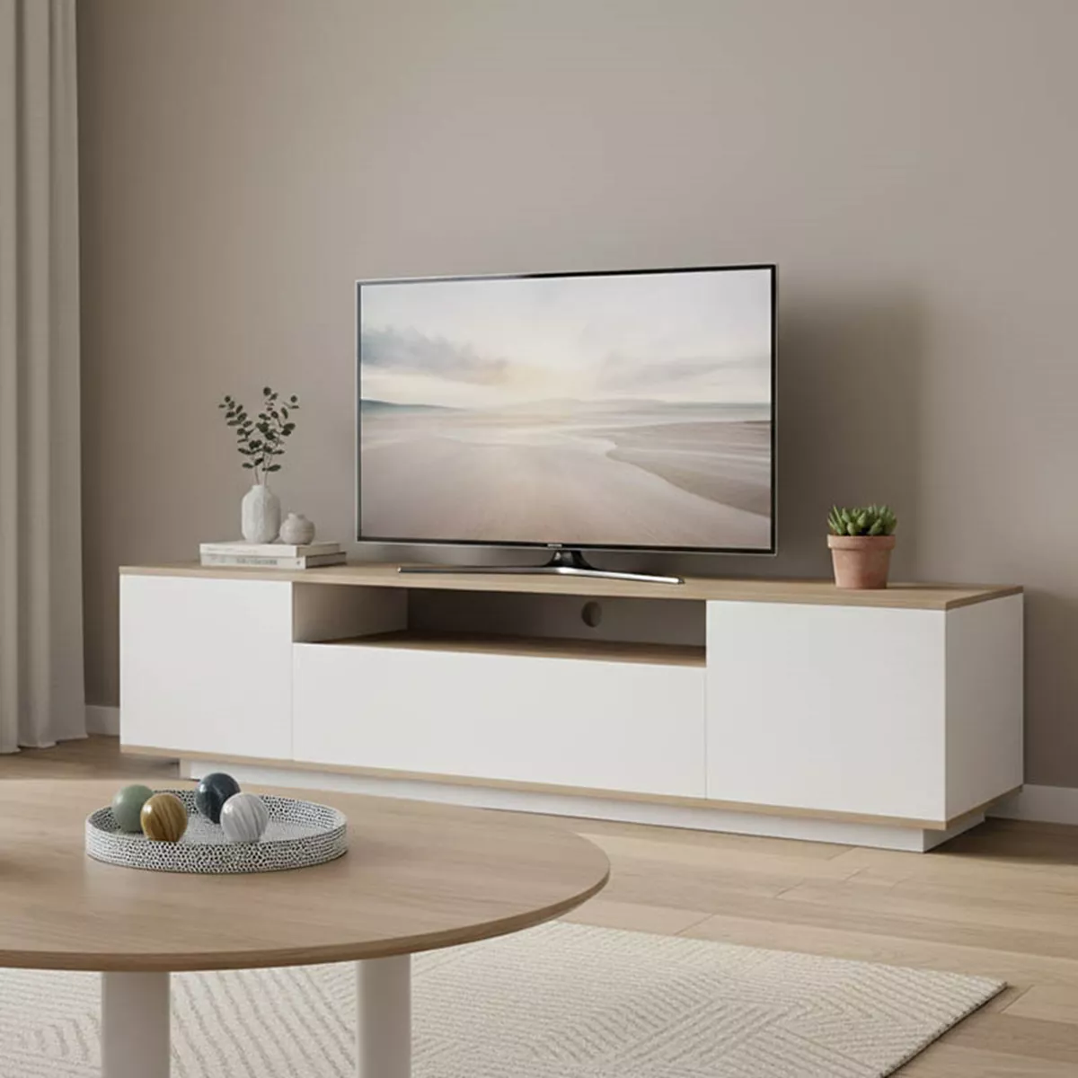 Upgrade your entertainment corner with this modern and versatile TV stand, designed to combine style with generous storage capacity. The blend of bright white finish with the warm wood tone creates an aesthetic that fits perfectly in modern and minimalist interiors.