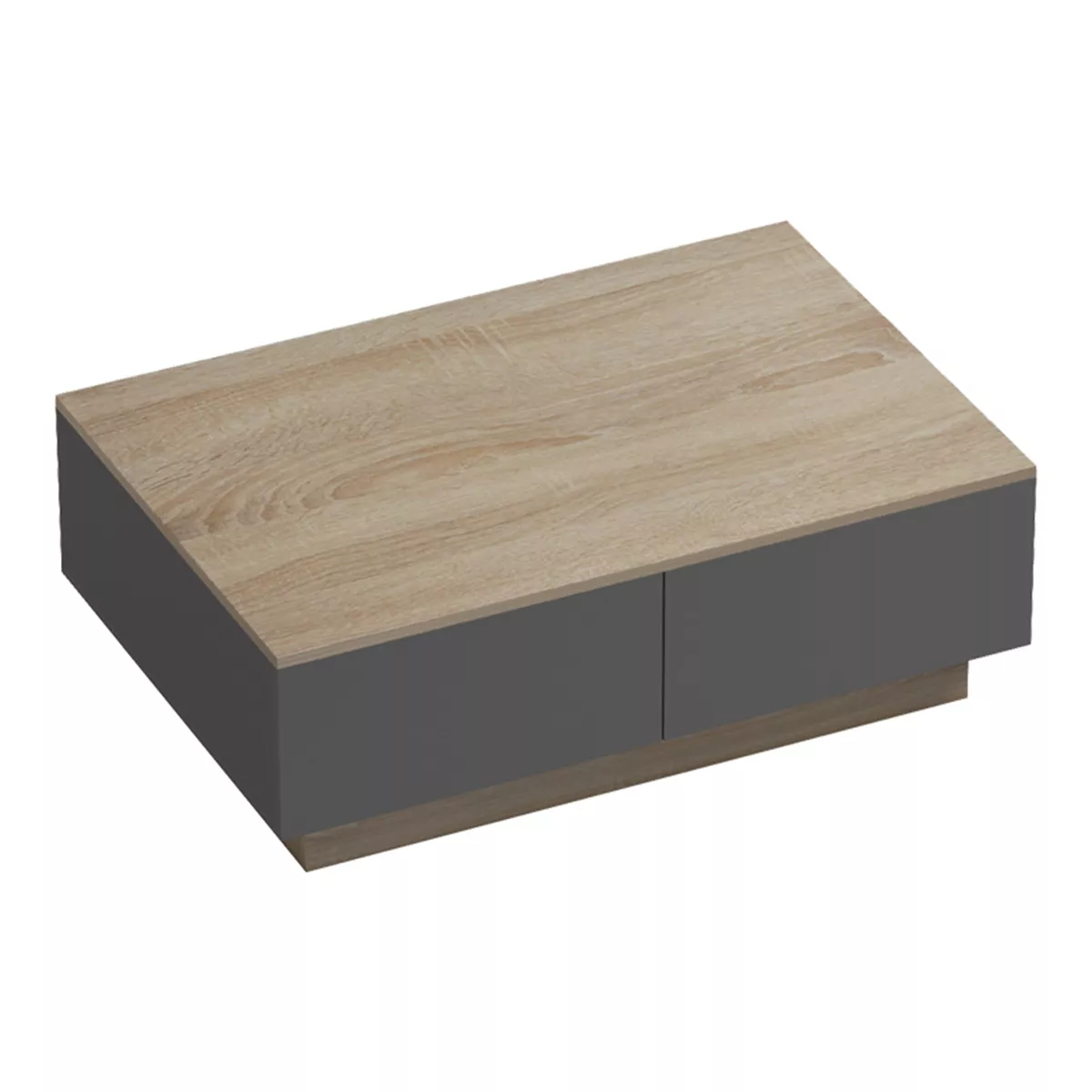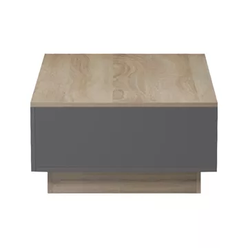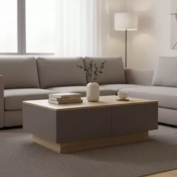 Upgrade your living room with the elegant and functional Winey coffee table, which perfectly combines style with practicality. Its modern design, featuring the warm wood tone on the top and base combined with clean grey fronts, makes it an ideal addition to any contemporary space.