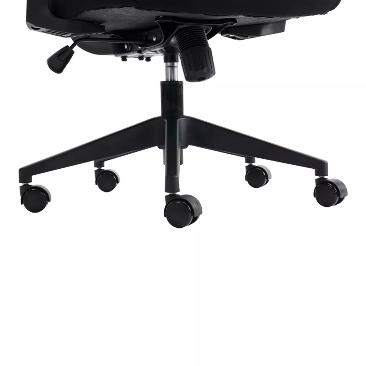 - The five-star base is made of nylon, an extremely popular material for office chairs, as it is known for its high strength and resistance to wear, making it an ideal choice for everyday use. At the same time, it is a lightweight material that allows for easy movement of the chair without sacrificing stability and safety.