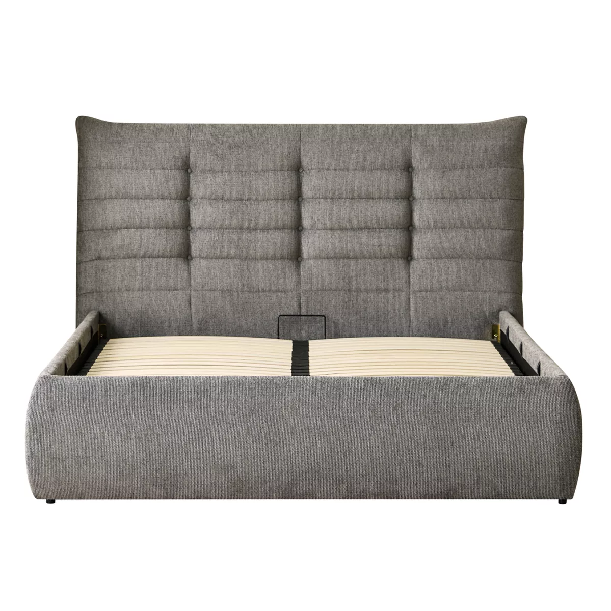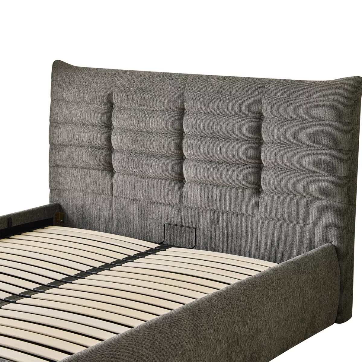 The mattress is supported by 20 rows of ergonomic mattress slats, which are placed on a metal frame that can be raised with a safety mechanism, offering a large storage space also upholstered in fabric. A modern proposal that will renew your bedroom.