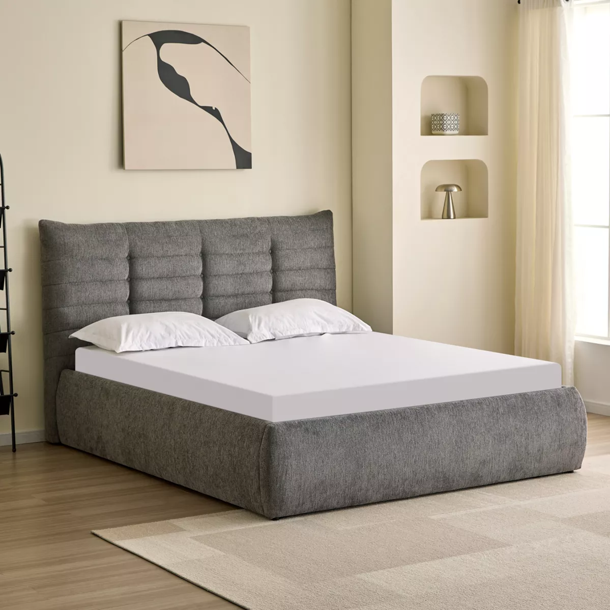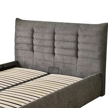 The SANDRA double bed (for a 160x200 mattress) is a new addition to our range. It features a GREY fabric upholstery, and the headboard is in a quilted style.