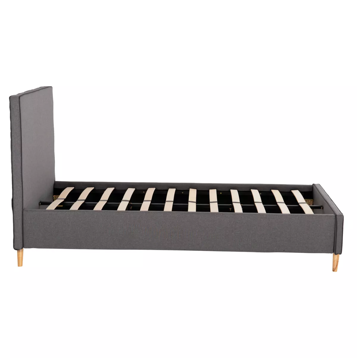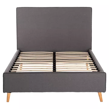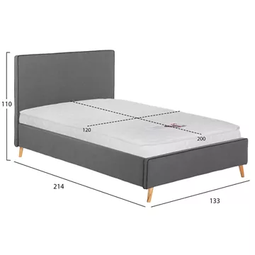 The MAYLIN semi-double bed is upholstered with quality GREY fabric with a darker railing on the seams. The mattress (which comes in ROLL-PACKING* form) that accompanies the bed is placed on two rows of anatomical slats, is double-sided and it is a FOAM mattress without springs. The legs are wooden in natural color.