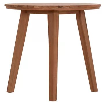 Wipe with a damp cloth and mild soap. Apply teak oil periodically to maintain its natural glow and protect the surface from outdoor exposure.