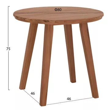 The DANTE dining table blends the timeless charm of solid teak wood with the elegance of a round silhouette. Its sturdy four-leg base ensures stability and durability, while the natural teak finish highlights the warm, organic texture of the wood.