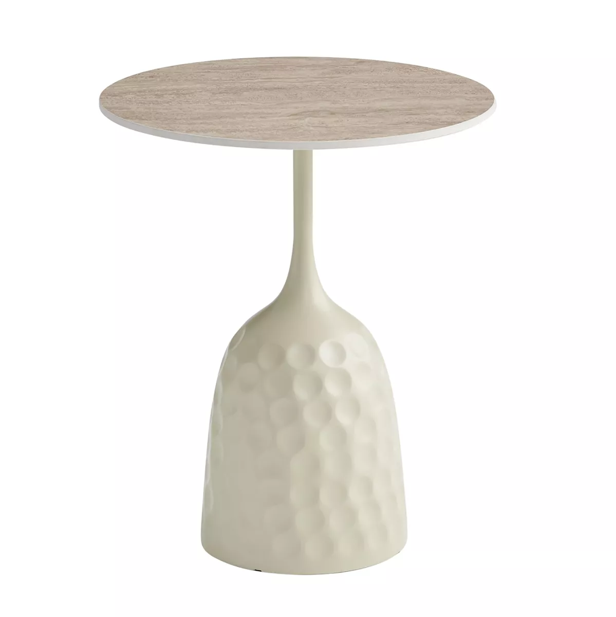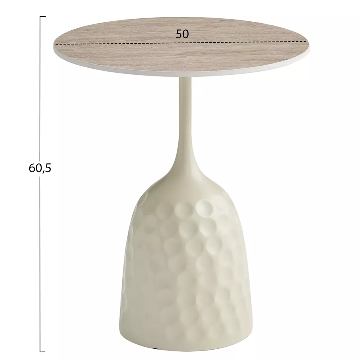 LONGSTEM is an impressive coffee table that will adorn your living room. Its tall cylindrical base is metallic with a dotted style in CHAMPAGNE color, while the round tabletop is ceramic in TRAVERTINE STONE color scheme. Ideal for both home and professional spaces.