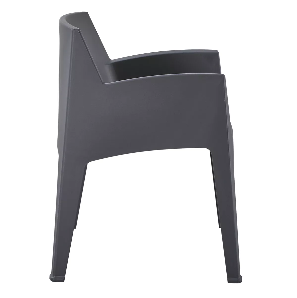 The polypropylene armchair “SLEEK” in GREY color is the ideal proposal for use in outdoor spaces, either professional (banquet halls, catering companies, etc.) or for the home. It consists of a molded assembly of seat-back-armrests-legs.