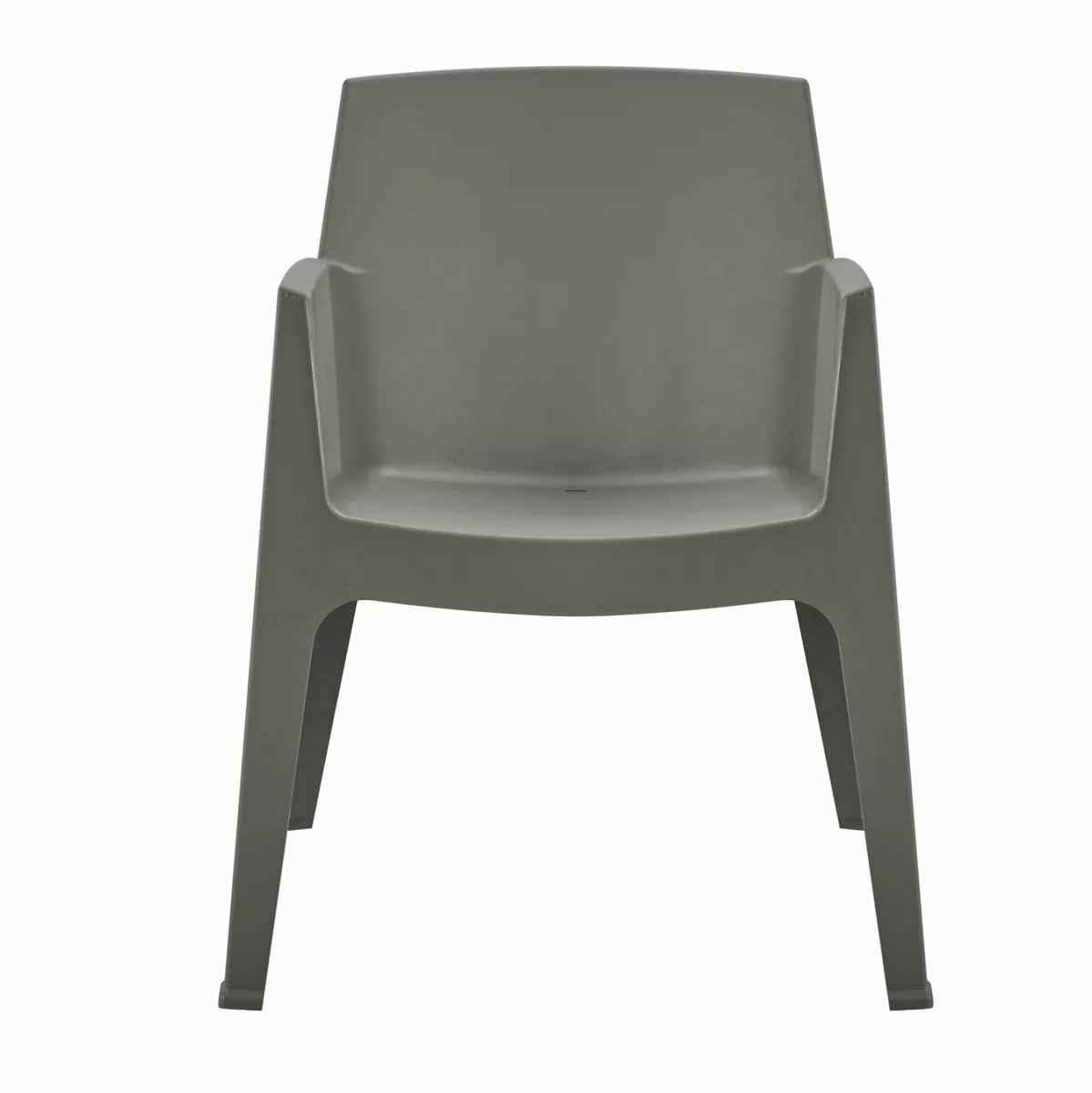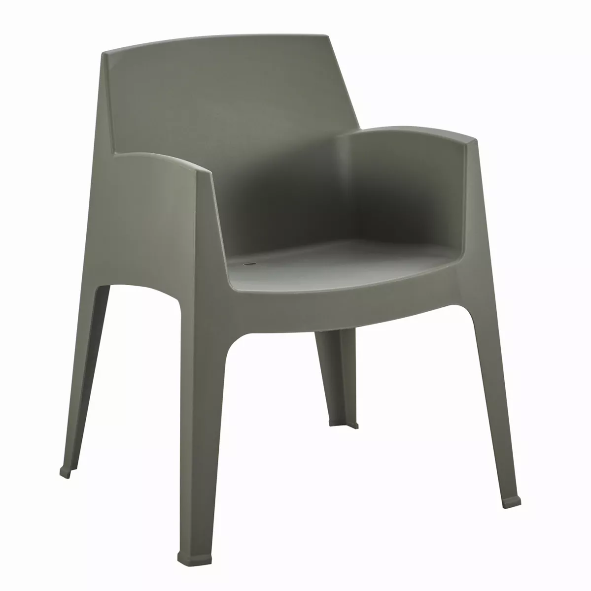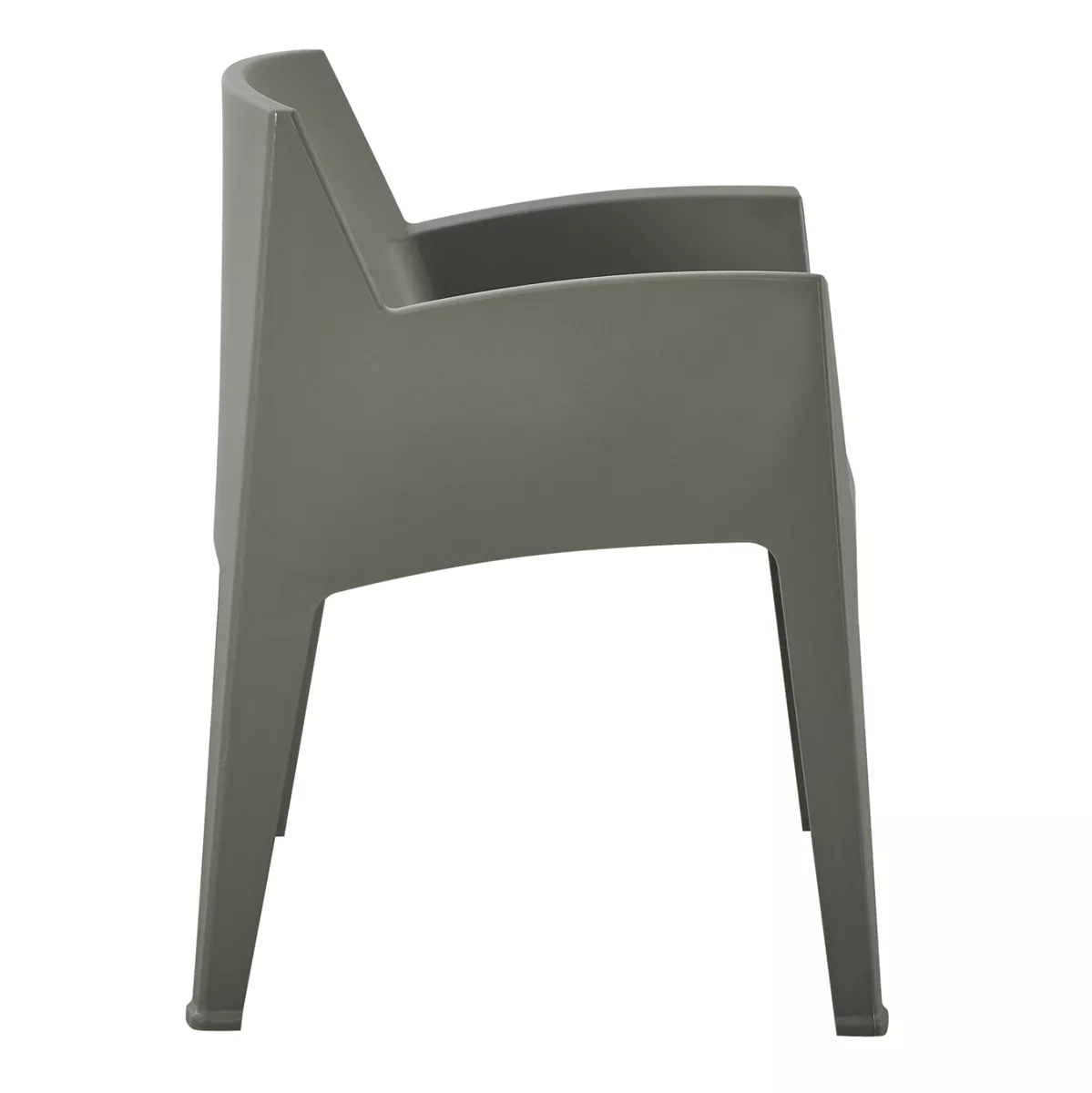 The polypropylene armchair “SLEEK” in DARK OLIVE GREEN color is the ideal proposal for use in outdoor spaces, either professional (banquet halls, catering companies, etc.) or for the home. It consists of a molded assembly of seat-back-armrests-legs.