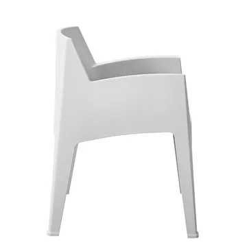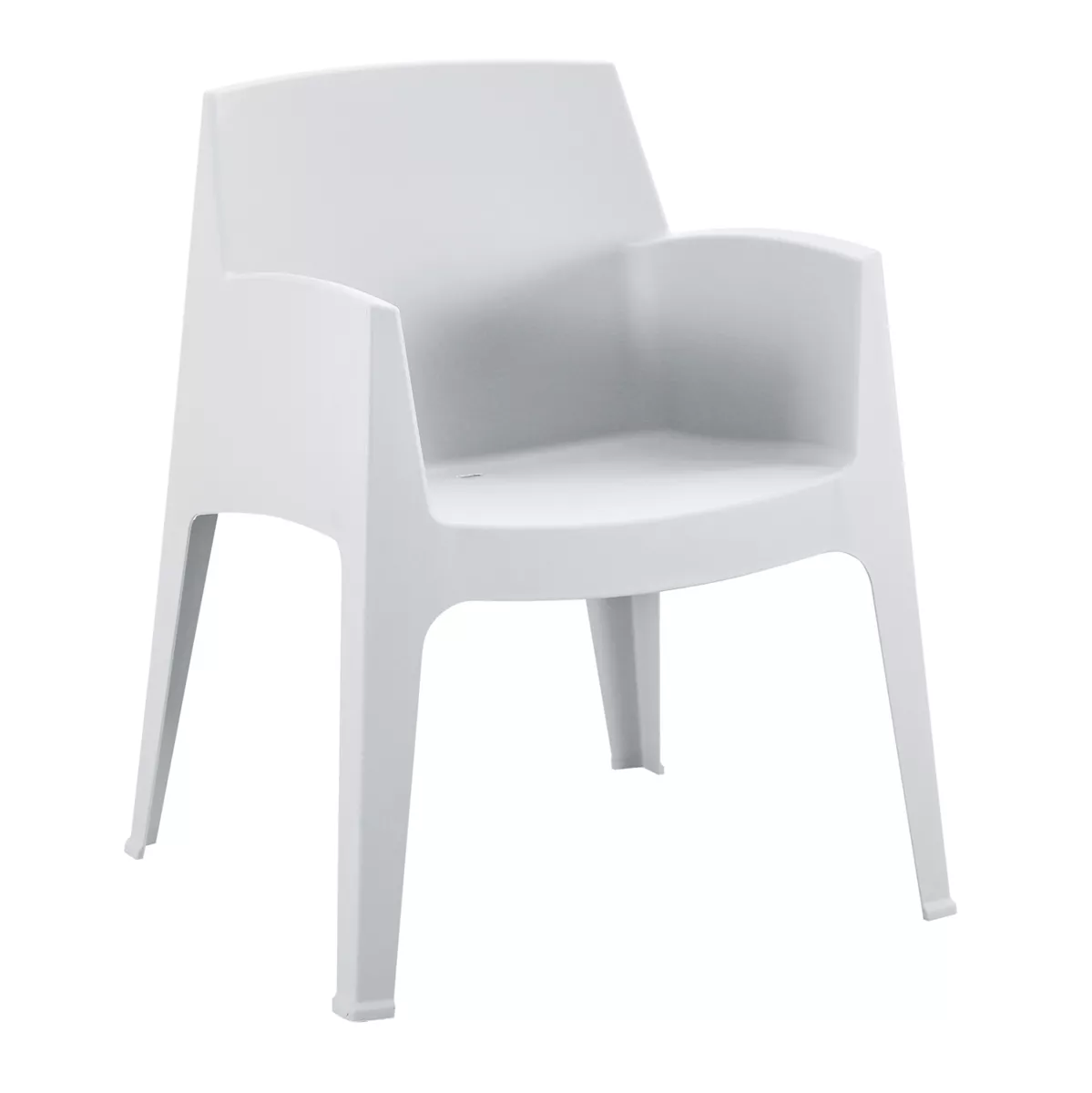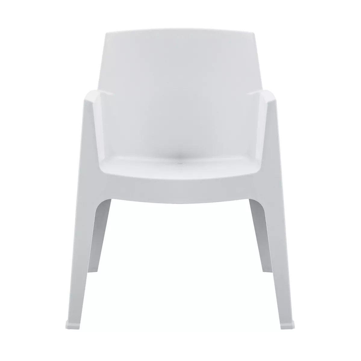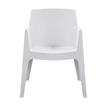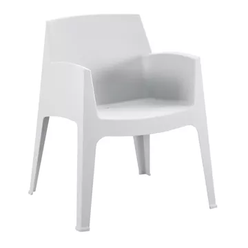 The polypropylene armchair “SLEEK” in WHITE color is the ideal proposal for use in outdoor spaces, either professional (banquet halls, catering companies, etc.) or for the home. It consists of a molded assembly of seat-back-armrests-legs.
