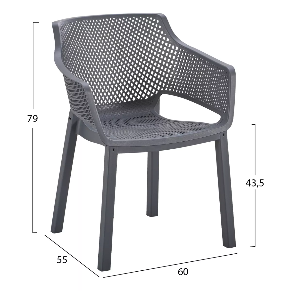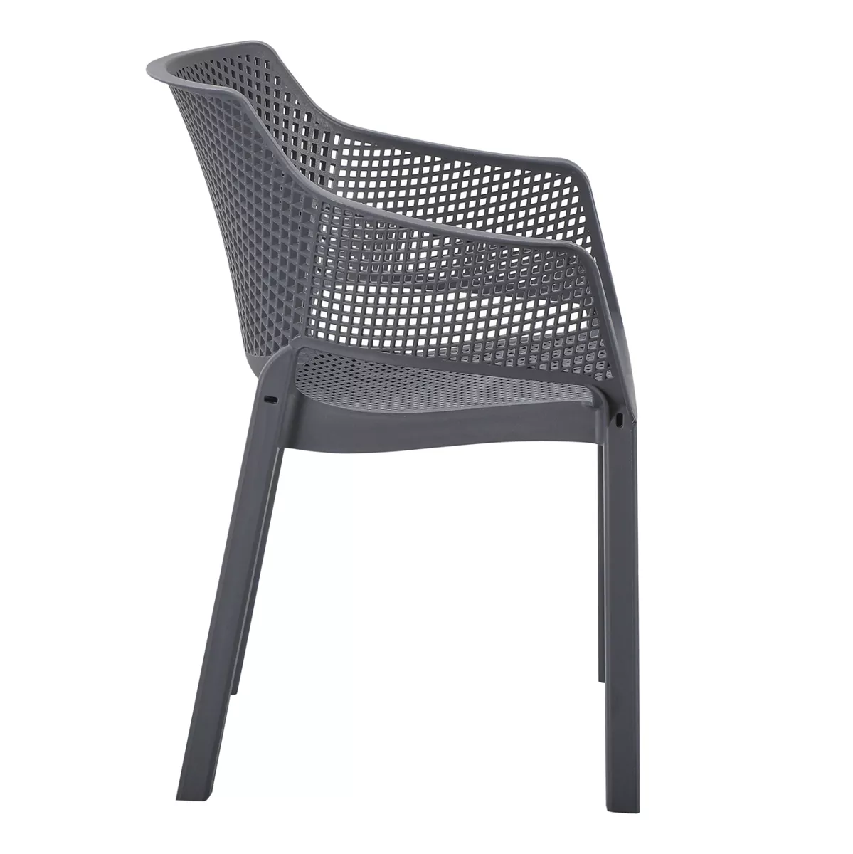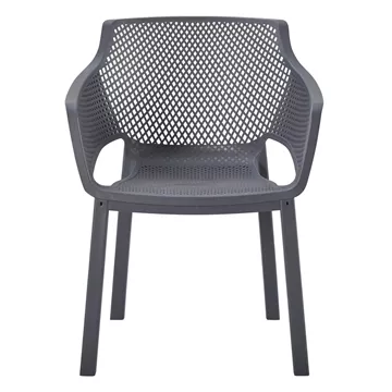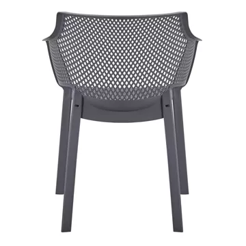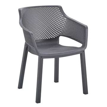 The “PEGGY” polypropylene armchair in GREY is a classic choice for outdoor use, either professional since it is STACKABLE (banquet halls, catering companies, etc.) or for the home. It consists of a molded "perforated" seat-back-armrest assembly for better ventilation.