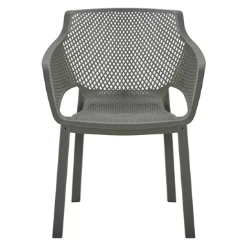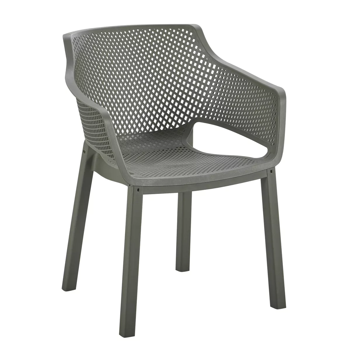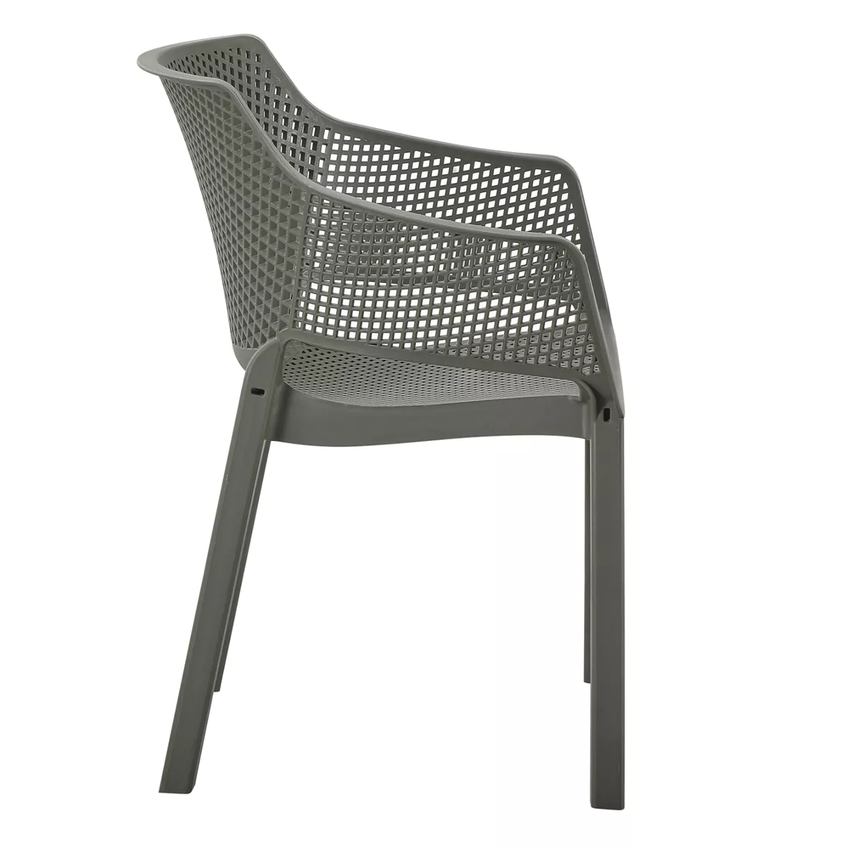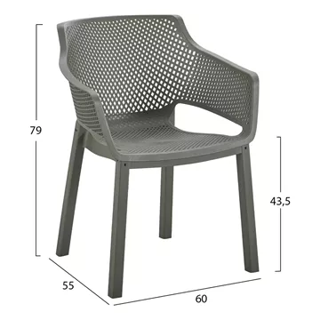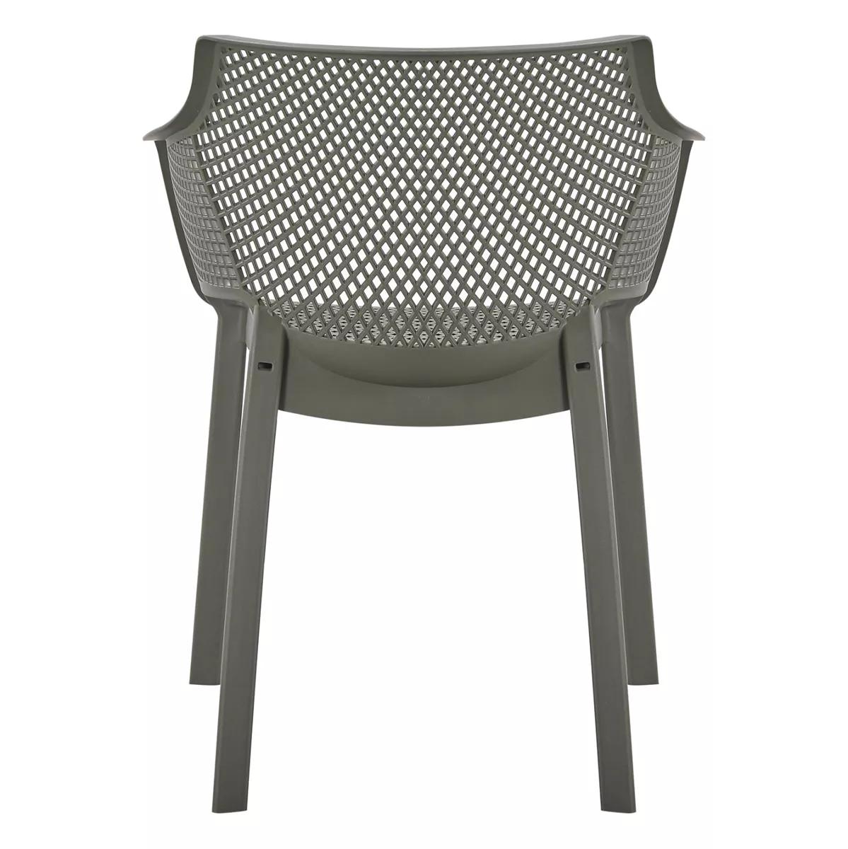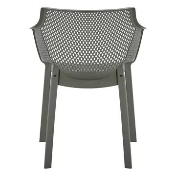 The “PEGGY” polypropylene armchair in DARK OLIVE GREEN is a classic choice for outdoor use, either professional since it is STACKABLE (banquet halls, catering companies, etc.) or for the home. It consists of a molded "perforated" seat-back-armrest assembly for better ventilation.