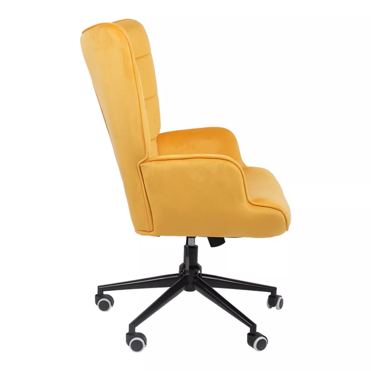Its ergonomic design with a high, tufted backrest embraces your body, providing ideal support for long hours. The soft velvet upholstery adds a touch of elegance, while the stable base with wheels allows for easy movement and adaptability to your space. Perfect for the office, living room, or reading corner.