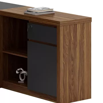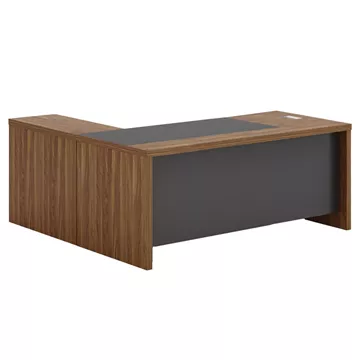 Reversible steering desk (place on whichever side you want), in the impressive walnut - anthracite coloring. Made of high quality materials and according to today's ergonomic requirements.