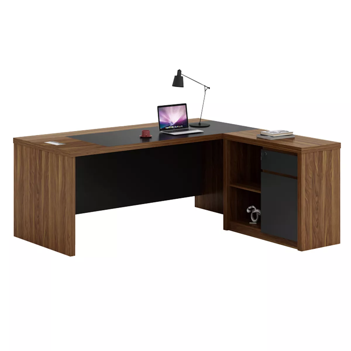 - Side desk: Reversible that rests on the main desk and has multiple storage spaces: Drawer, cabinet and shelf. Surface made of high quality chipboard with melamine coating.