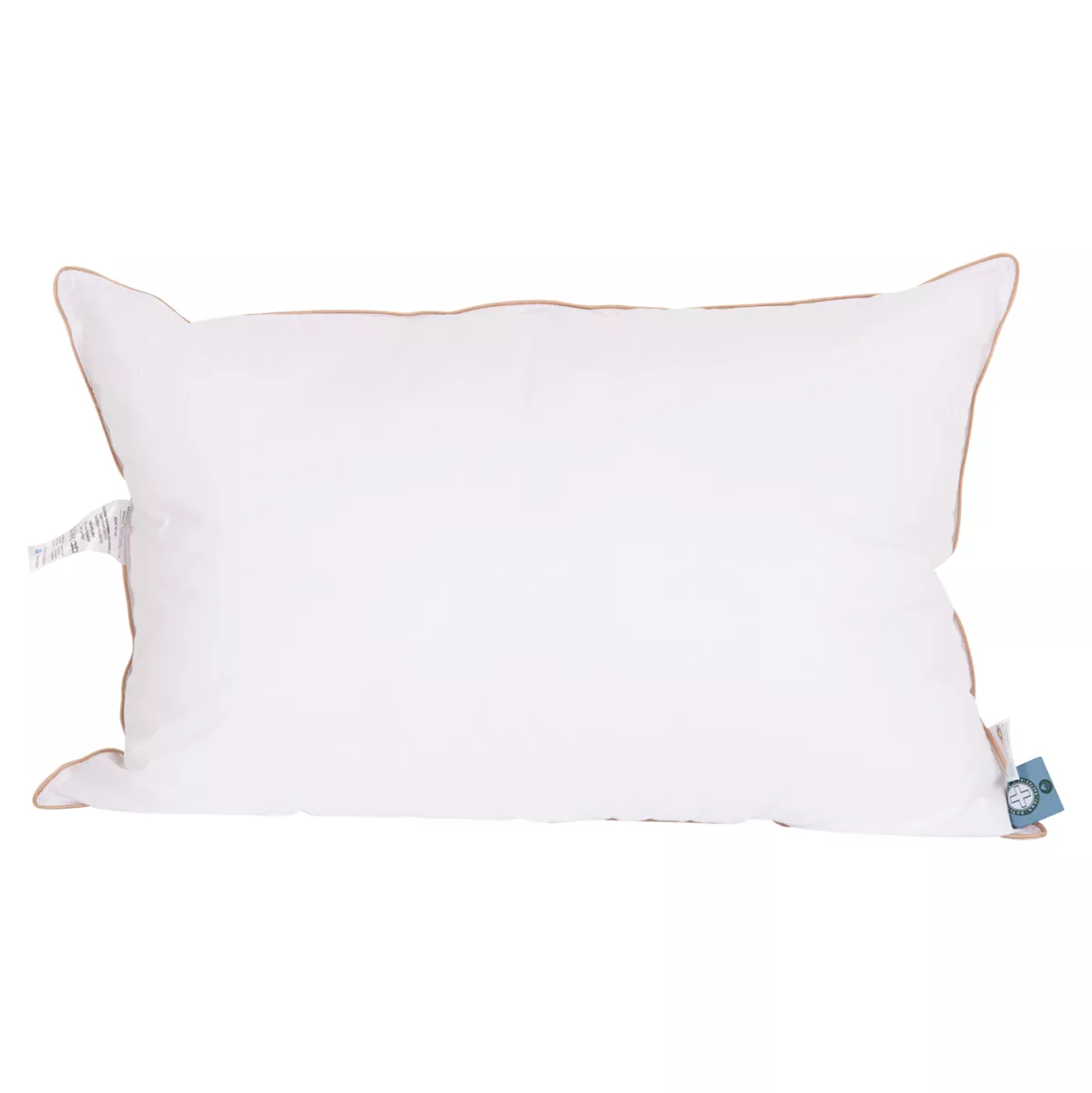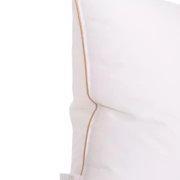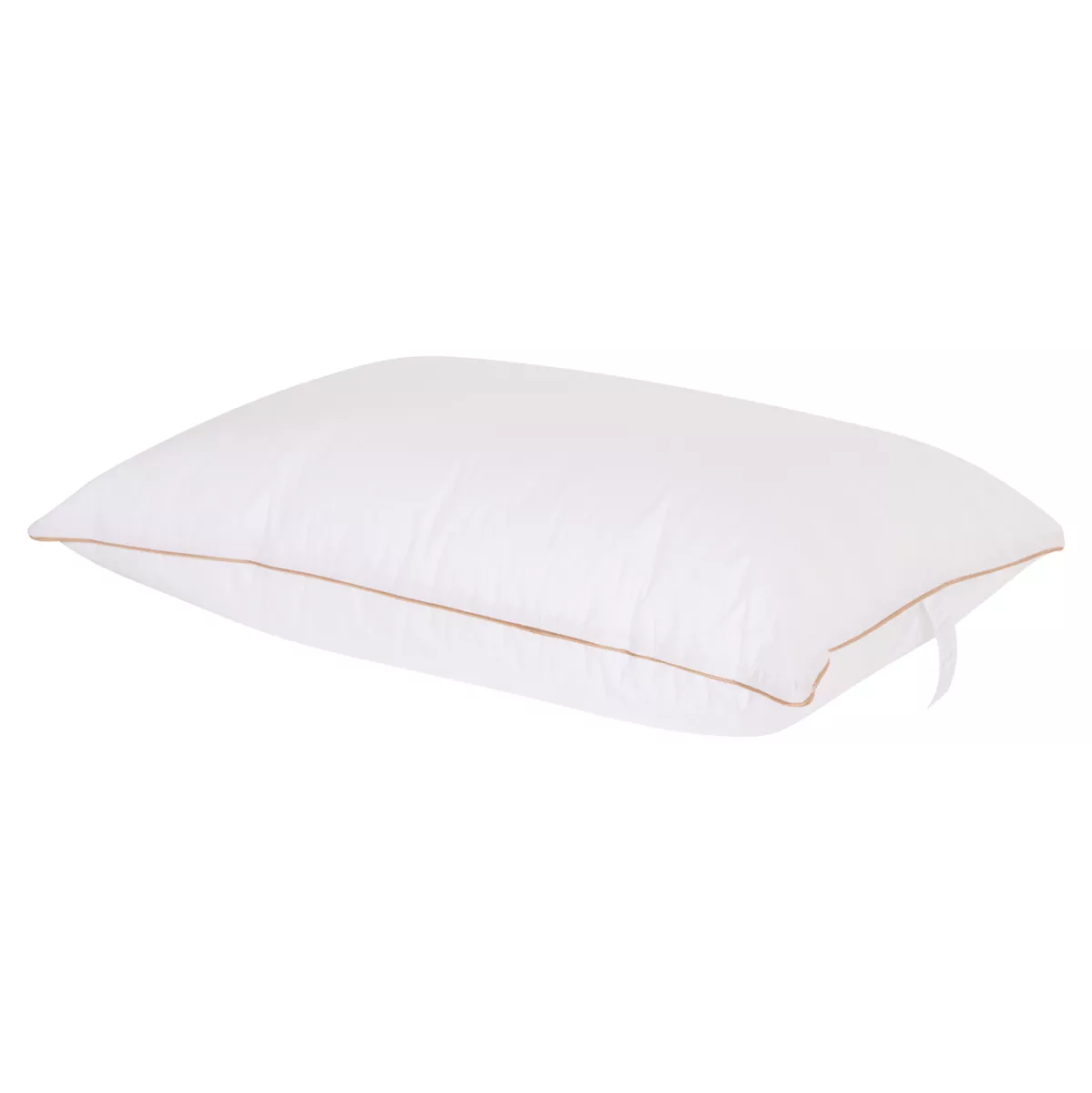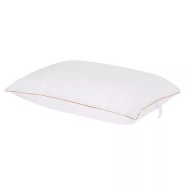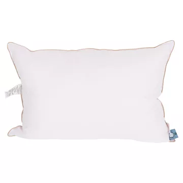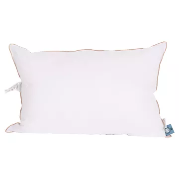Sleeping pillow filled with 100% nanofiber Down Like and covered with soft Down Proof 233TC fabric. Features double-stitched piping and offers the comfort of a feather pillow.