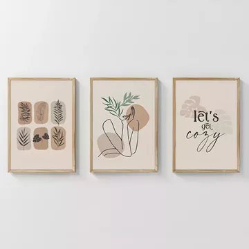 Bring contemporary linear art, abstract nature, and positive vibes into your space, creating a cozy and chic atmosphere. The Xinbia triptych is an aesthetic statement consisting of three distinct, interacting pieces, giving a modern and contemporary character.