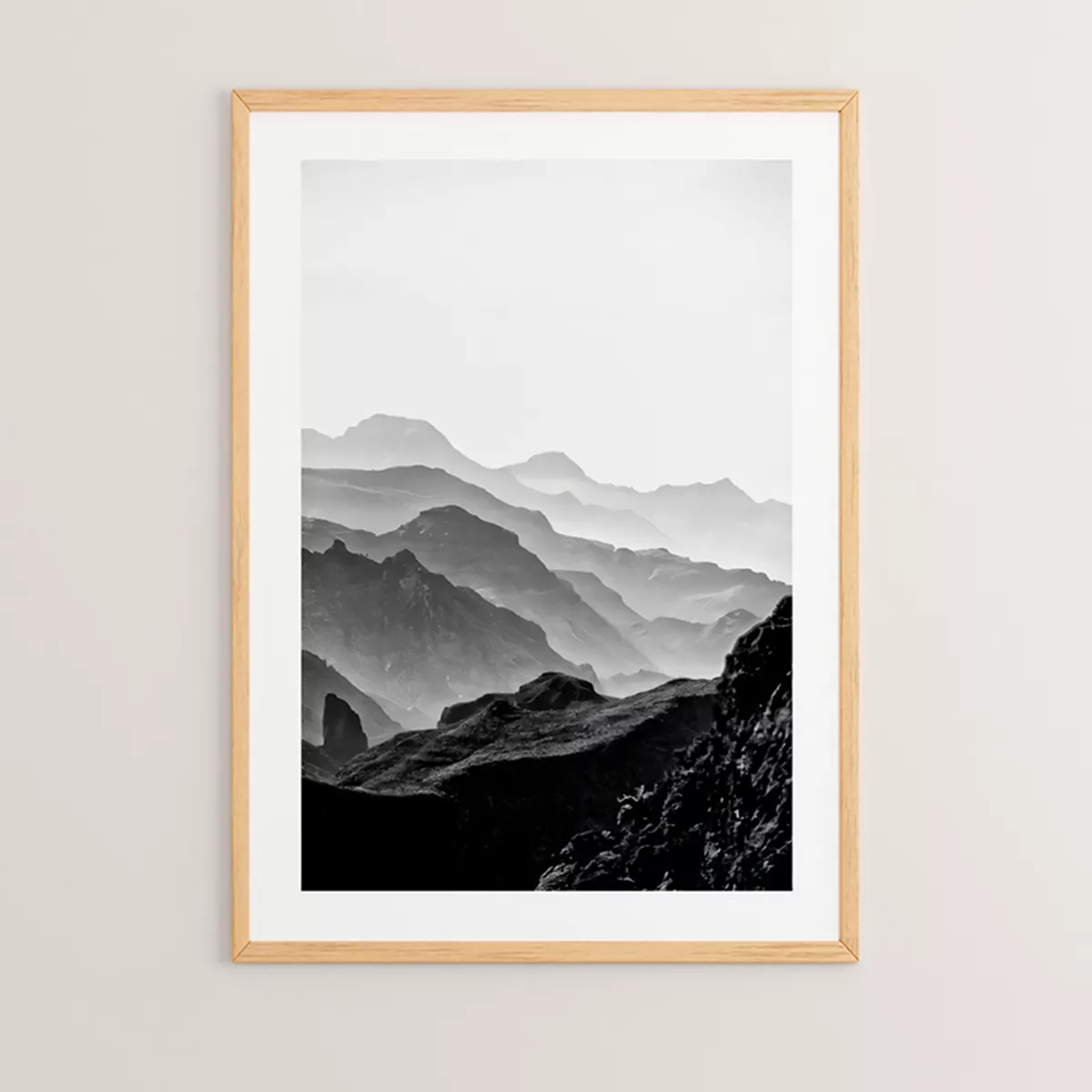 Discover the serenity of nature through the elegance of black and white. This wall art captures a striking mountain landscape, with the hills fading into the mist, creating a play of light and shadow that offers a sense of depth and tranquility.
