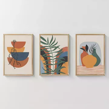 Introduce an explosive blend of tropical vibrancy into your space, creating an atmosphere of travel and artistic expression. The Alenza triptych is an aesthetic statement composed of three distinct panels, each with its own dynamic theme. The artwork evokes feelings of joy, creativity, and brightness, bringing energy and warmth to any setting.