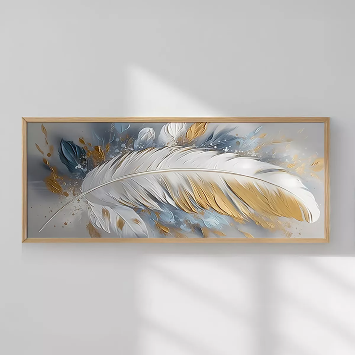 The Riacto painting is the refined statement your décor has been waiting for. Each time your eyes rest upon it, a sense of calmness surrounds you. Its central motif — a majestic, ethereal feather — symbolizes freedom, spirituality, and renewal. This is not just a decorative piece; it’s an investment in your everyday well-being and a visual reminder of serenity.