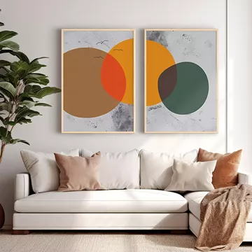 Are you looking for art that speaks the language of contemporary design? The Derdia diptych is the ultimate choice for lovers of refined modernism. This set of two paintings is not just decoration; it is an aesthetic statement that radiates calm strength and impeccable harmony. Every time your gaze focuses on the overlapping, organic shapes – the rich earth brown, the warm sun orange, and the deep forest green – you feel a sense of balance, warmth, and creative fulfillment. The artwork symbolizes the connection of contrasts, the simplicity, and the charm of natural geometry. It serves as a visual reminder that luxury lies in clean lines.