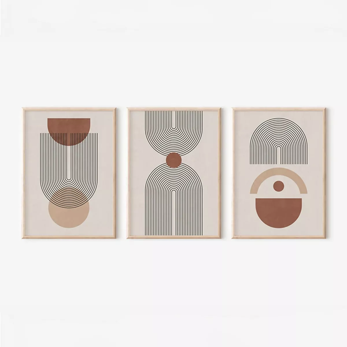 Add character and warmth to your wall with this striking triptych set of panels. The abstract, geometric compositions in earthy and terracotta tones follow the latest decor trends, offering a modern and sophisticated result.