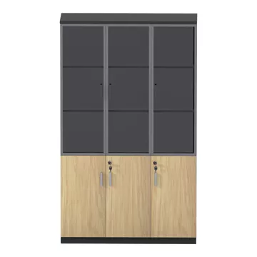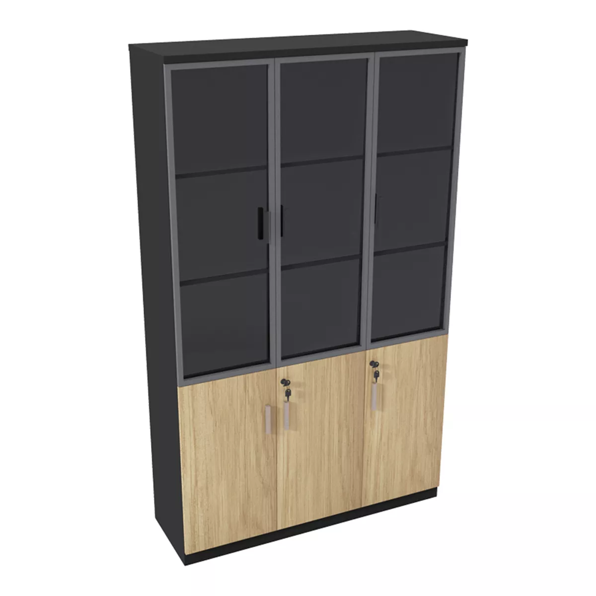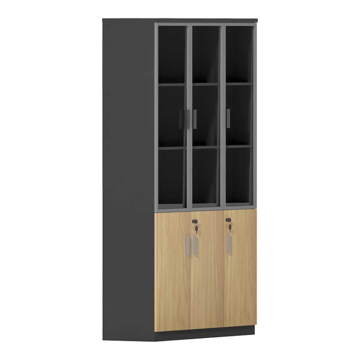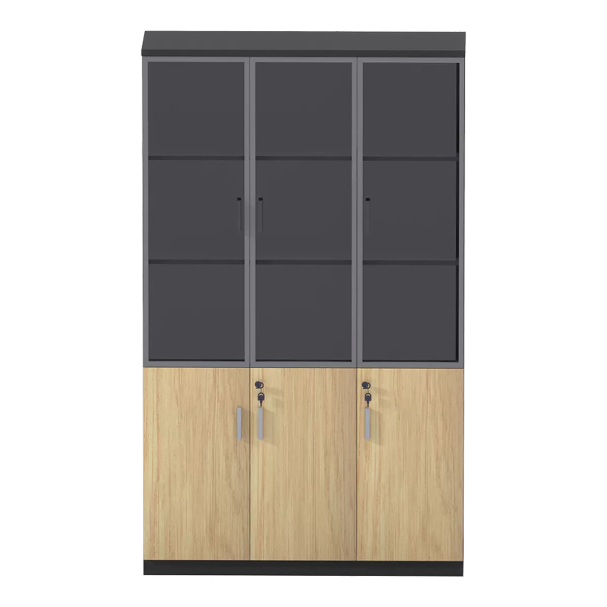 • Elegant Design: The blend of wood finish, glass doors, and metal accents creates a modern yet timeless style that fits perfectly in any office.