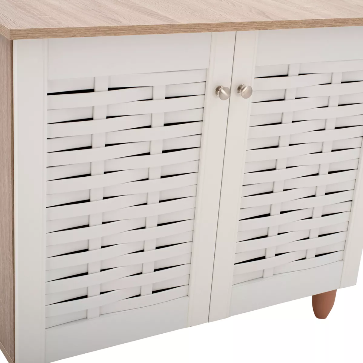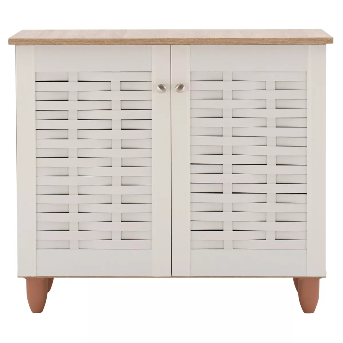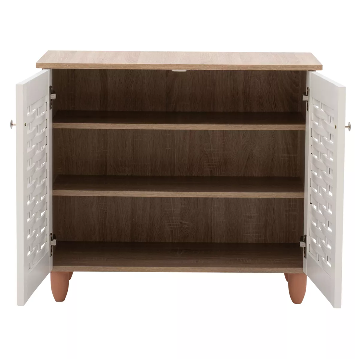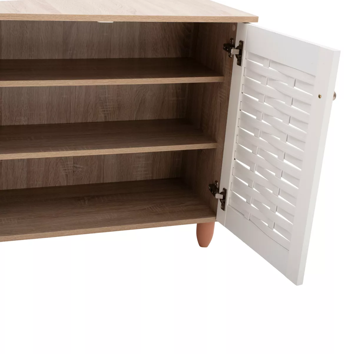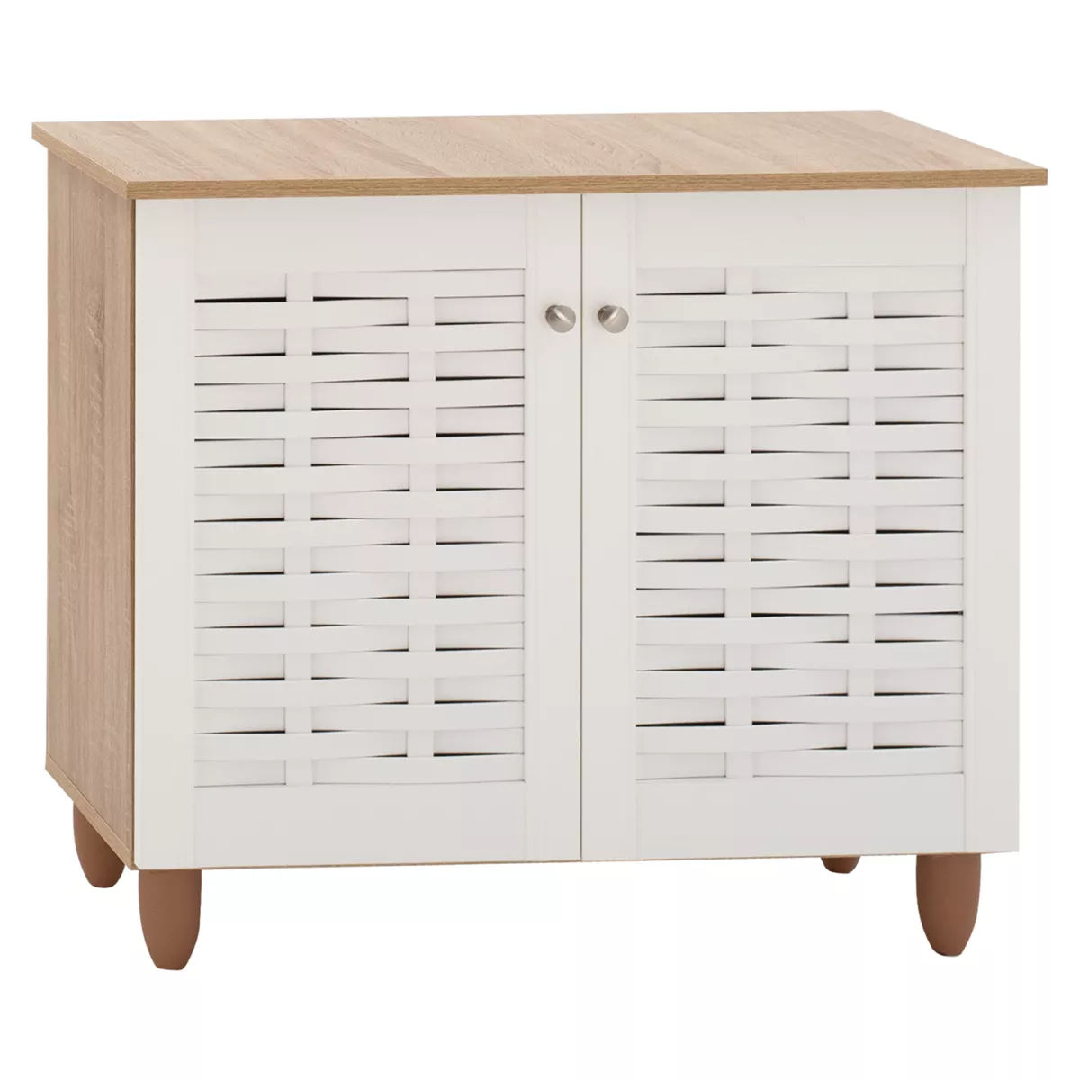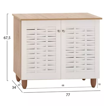 Shoe rack with 2 doors, made of high quality melamine, in sonama and white colour.