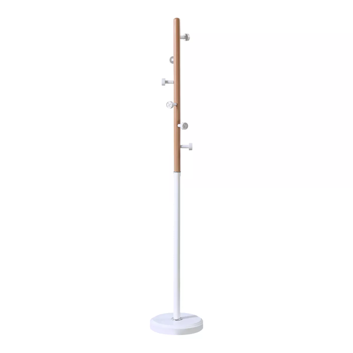 The base and hooks for hanging clothes, coats, etc., are made from durable resin material.