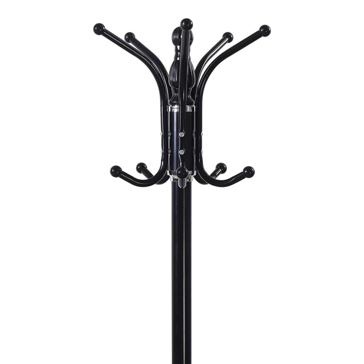Add a touch of timeless elegance and organization to your space with this classic floor-standing coat rack in a striking black finish. Its traditional design, combined with practical functionality, makes it an ideal choice for any entryway, office, bedroom, or reception area.