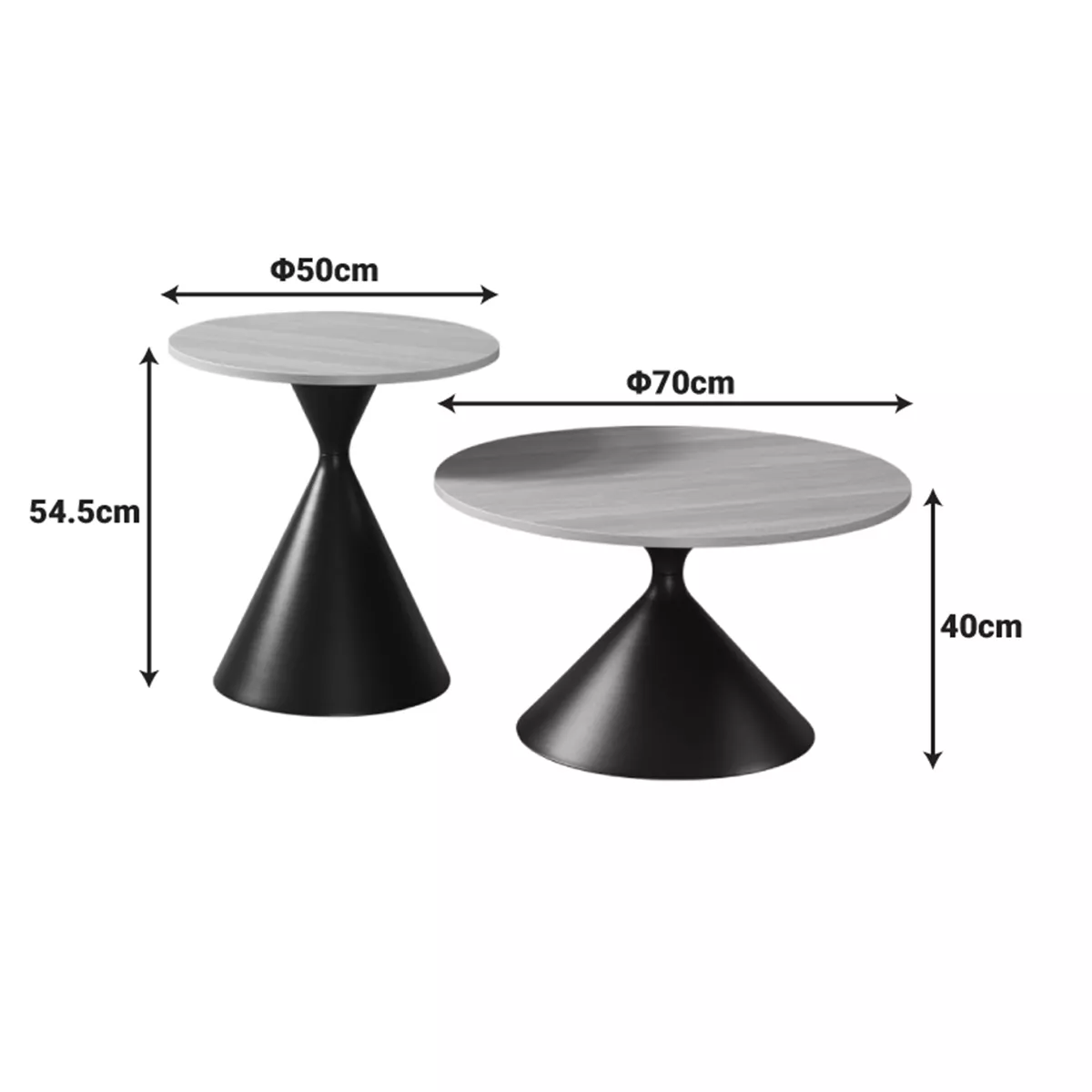 Upgrade your space with this refined set of two modern tables, designed to add a touch of elegance and functionality to any living room, office, or reception area. The combination of the warmth of wood and the dynamic form of metal creates a stunning visual effect.
