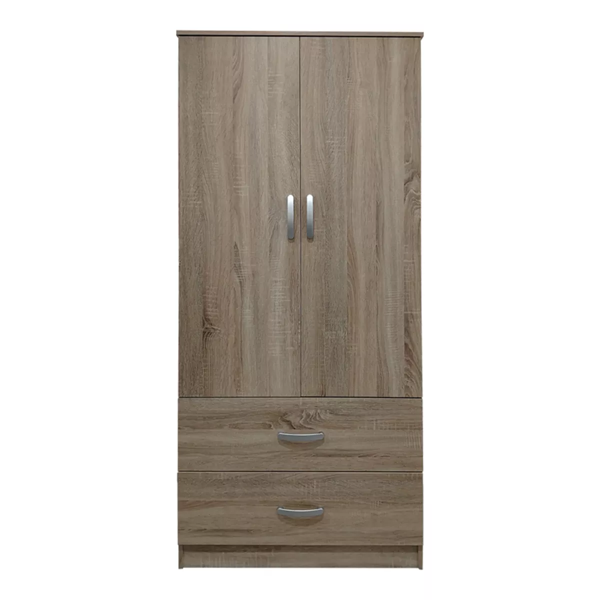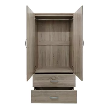 Features two doors with an internal hanging rail for clothes, as well as two spacious bottom drawers for storing garments and accessories.