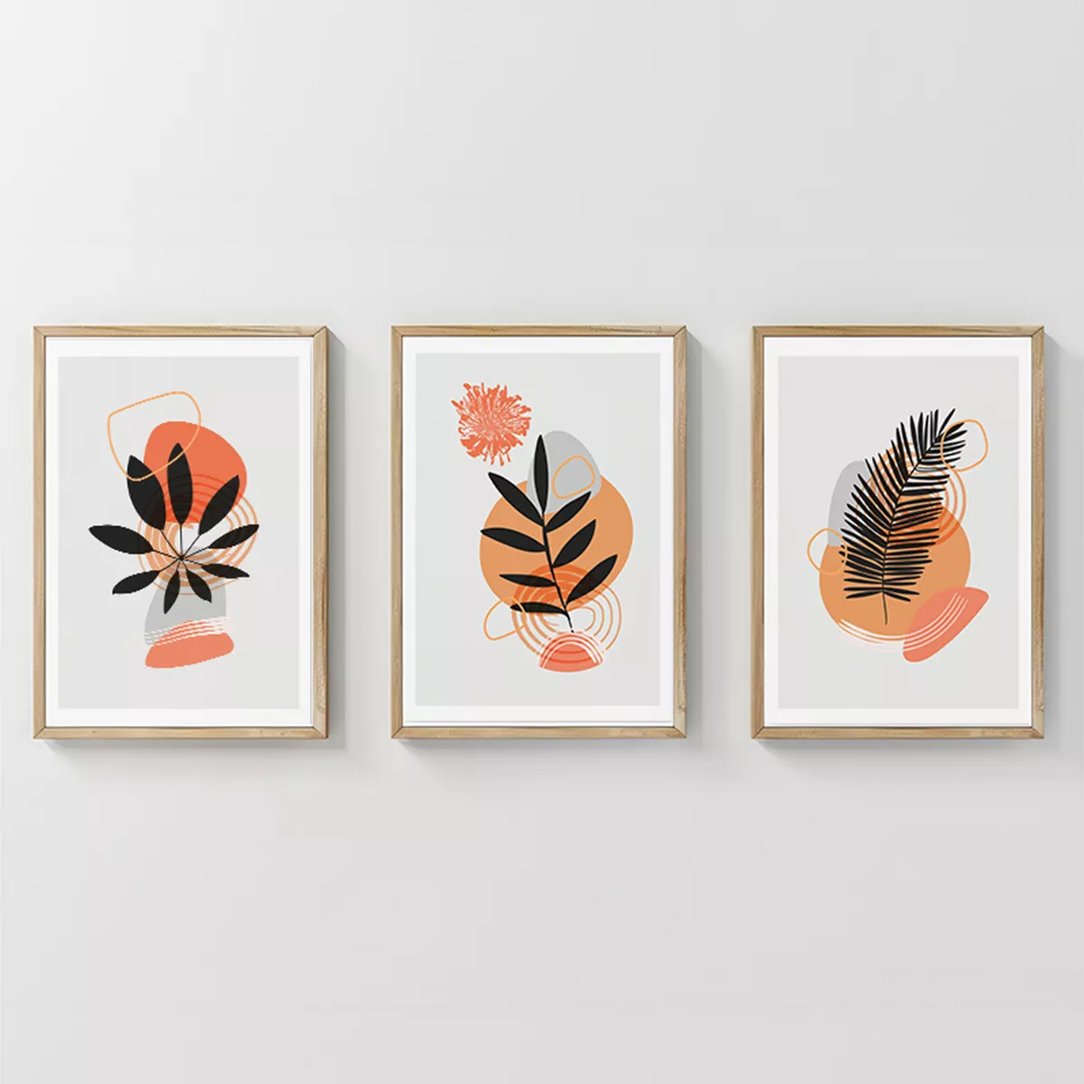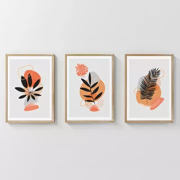 Upgrade your space with the Virel Triptych. It is the ideal piece to give your walls a minimalist, dynamic, and refined character. This three-piece composition, enhanced by high-resolution digital prints, features abstract patterns combining stylized, large leaves and plants with abstract forms and geometric shapes, creating a subtle, balanced visual rhythm and a distinctive aesthetic statement.