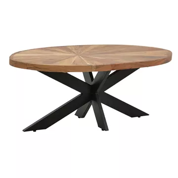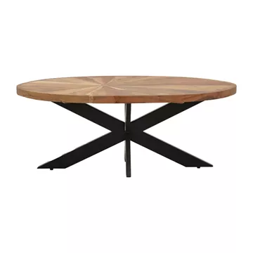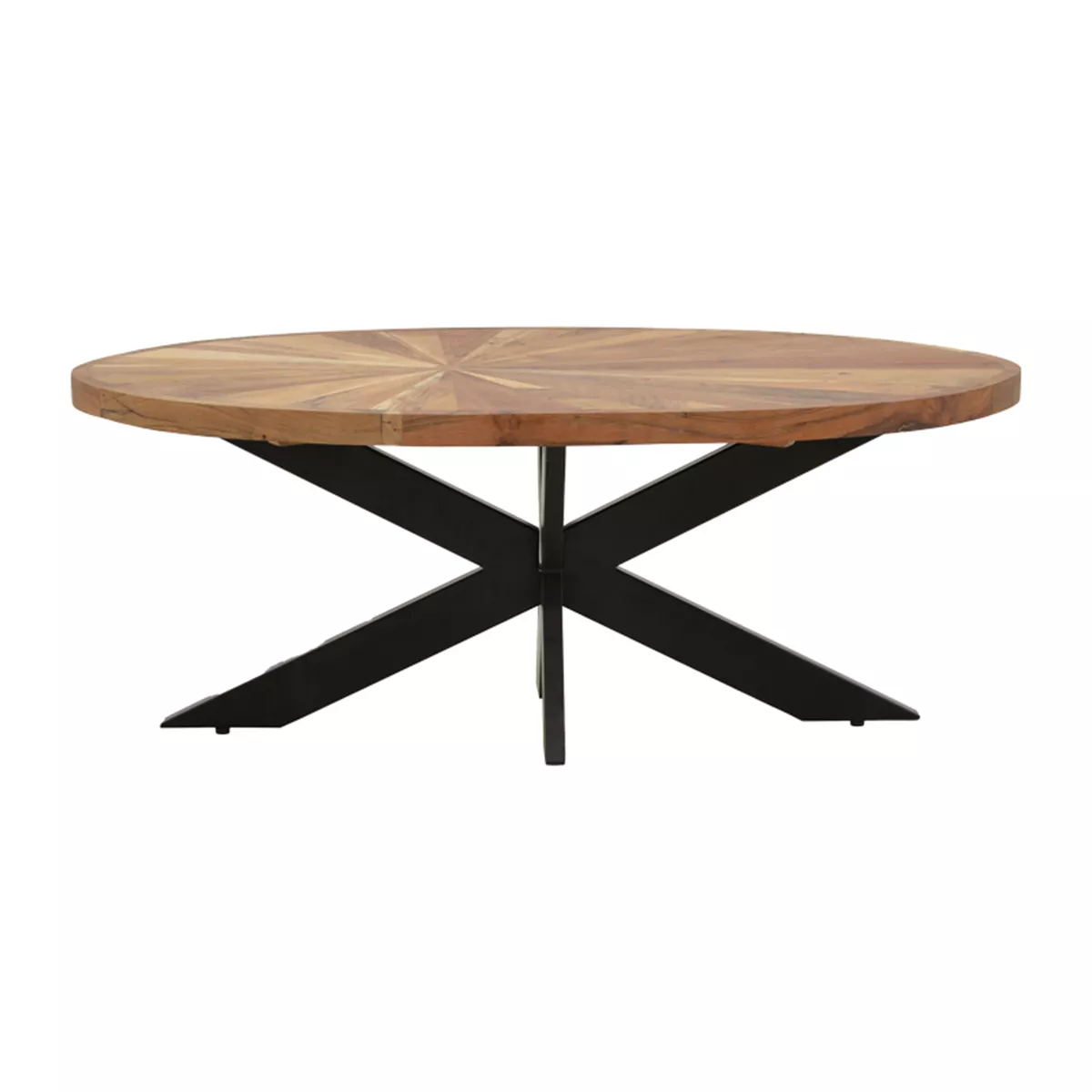 Unique Design: The oval-shaped tabletop, crafted from solid wood and featuring an impressive radial pattern, adds a sense of warmth and refined rustic elegance. Each table is one-of-a-kind, with the natural wood grain telling its own story.