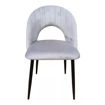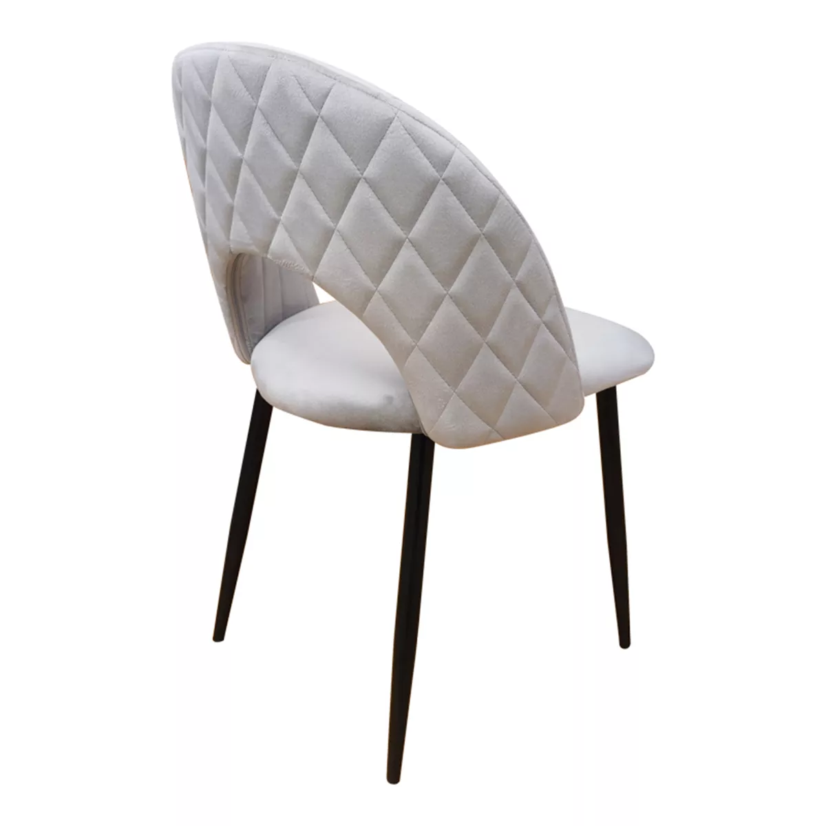 ergonomic backrest that embraces the body, along with a subtle cut-out at the lower part, offering not only comfort but also a striking visual detail that makes it stand out. The sleek, slim black legs complete the look, providing a modern and stable base.