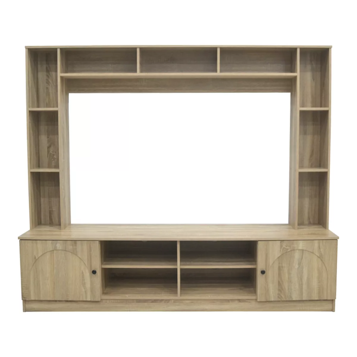 Features multiple shelves for open storage, organization, and arrangement of electronic devices as well as decorative compositions.