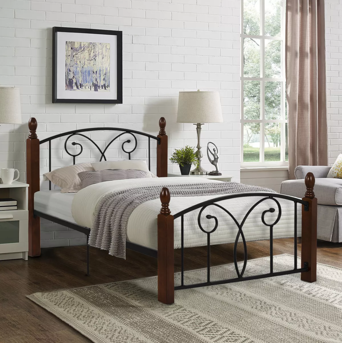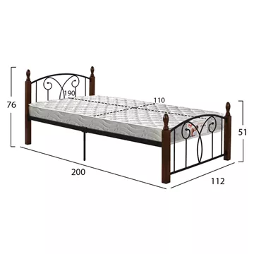 • The SUZIE bed in semi-double mattress size is a composition of metal in BLACK color and wood in WALNUT shade. The 4 legs-pillars of the bed are the wooden pieces of the composition, while all the rest is metal.