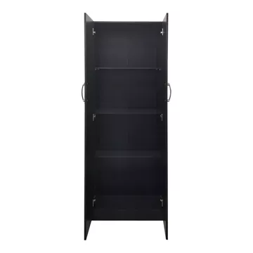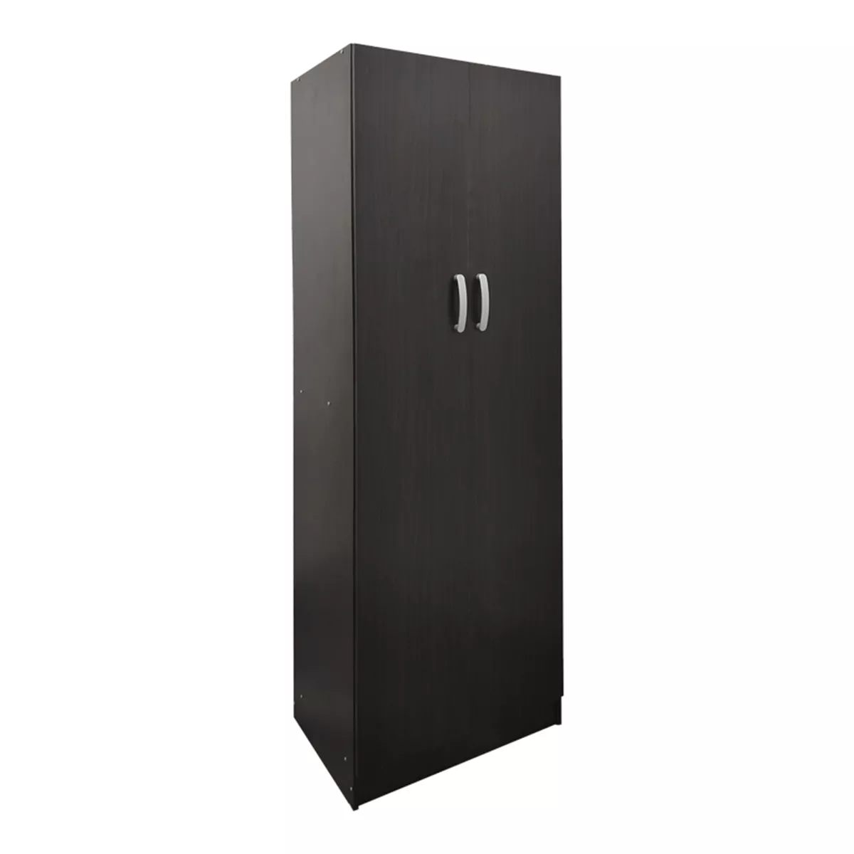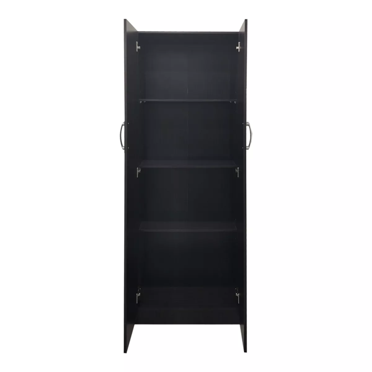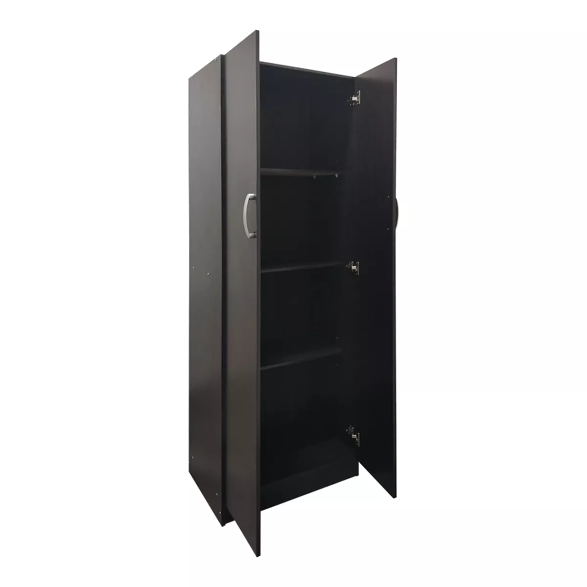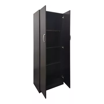 Includes two doors and features four internal shelves for organizing clothes and accessories.