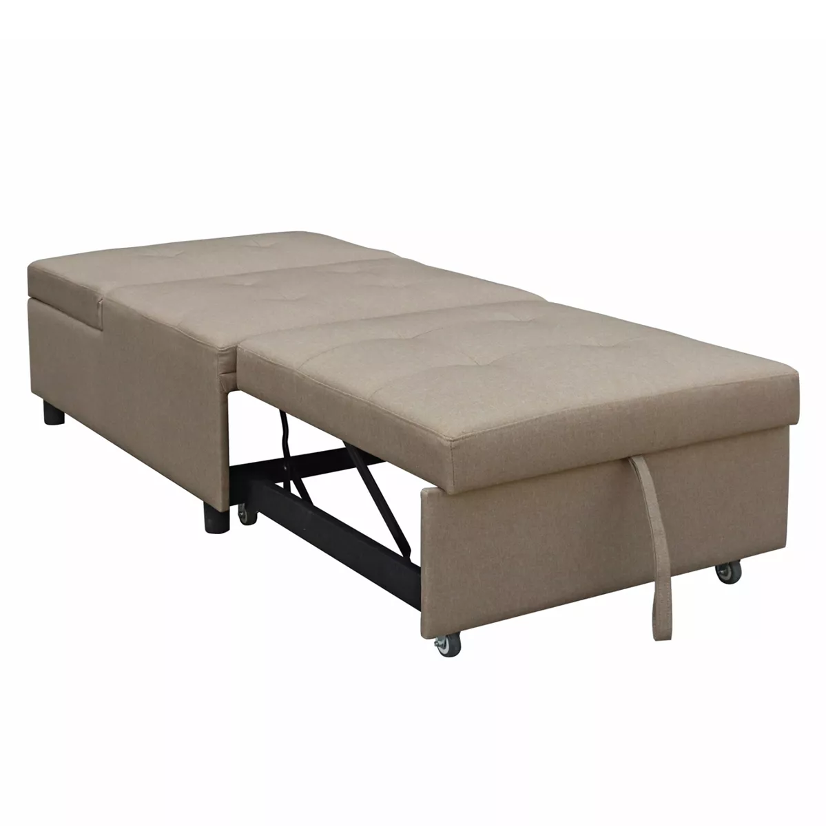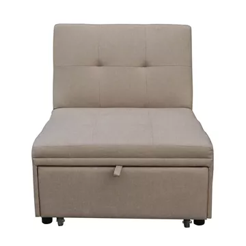 The LIBRE lounge chair has arrived and takes practicality to the next level. It has low legs, no armrests and is upholstered in quality fabric in BEIGE. What makes it stand out, however, is that it converts into a bed very easily by pulling out with a strap the bunk bed located under the seat, while the backrest slightly reclines, creating a comfortable single bed.