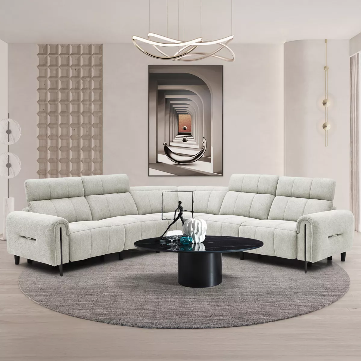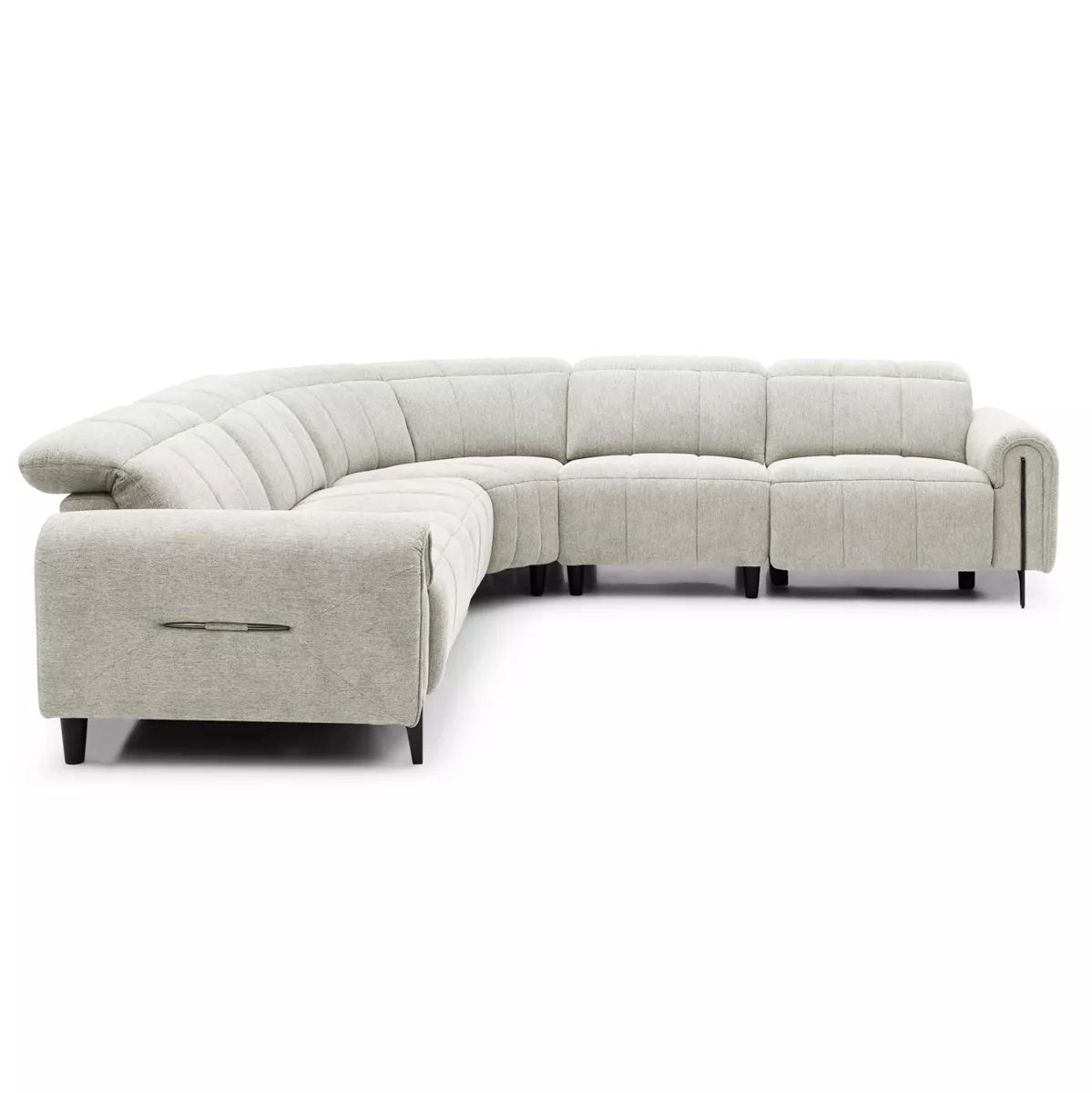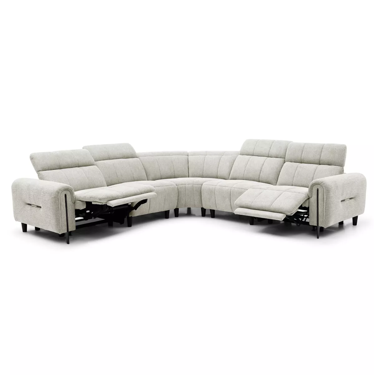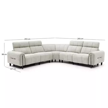 HOMEMARKT brings you “ORACLE”. This is a large equal-sided corner sofa that consists of 5 separate pieces that are joined together with panel hangers (like slots). The two pieces located at the ends have an electric recline function that raises the headrests and at the same time the front part of the sofa (as a footrest), offering comfort with style! The color of the upholstery of the entire sofa is BEIGE. The two sides have the same dimensions, while there is a corner part that connects the 2 sides. Finally, the legs of the sofa are relatively high, enhancing the practicality of the sofa!