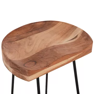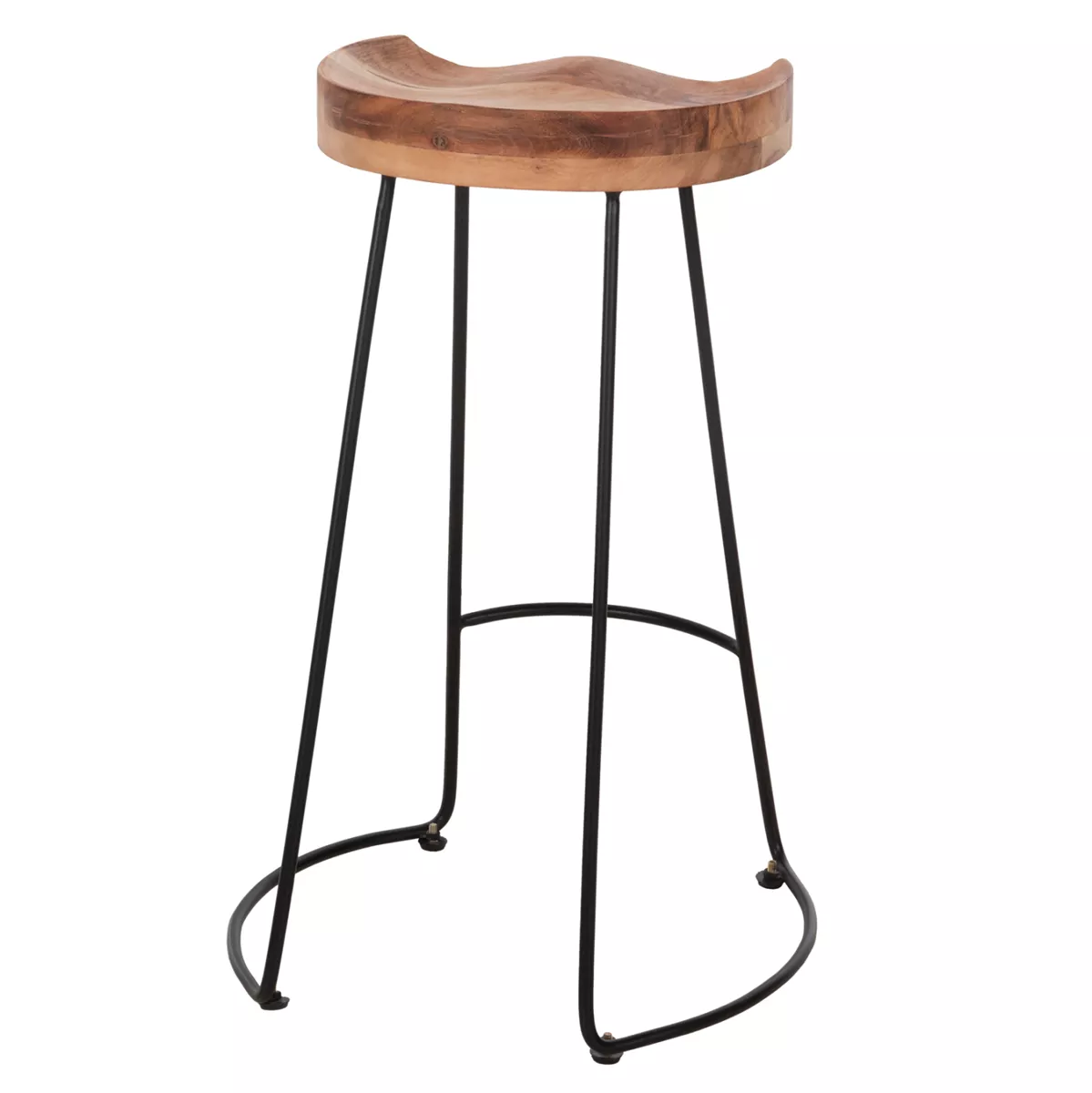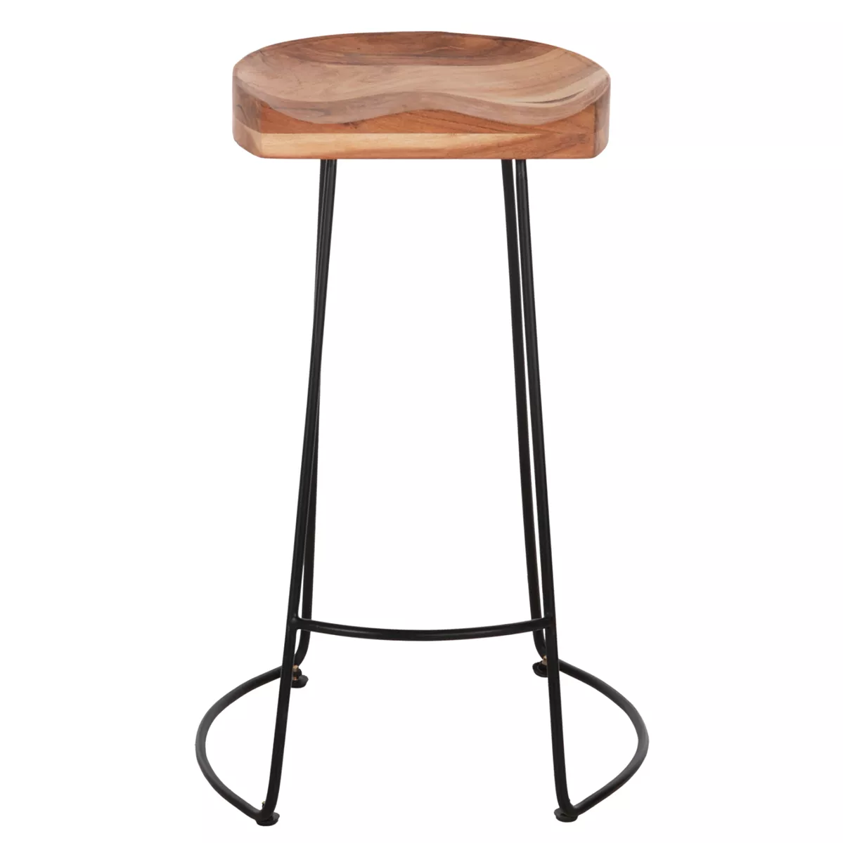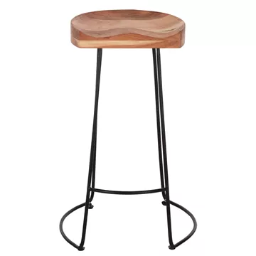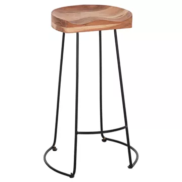 Bar Stool HM8363.11 with metallic base in black color and acacia wood, in a modern industrial design.