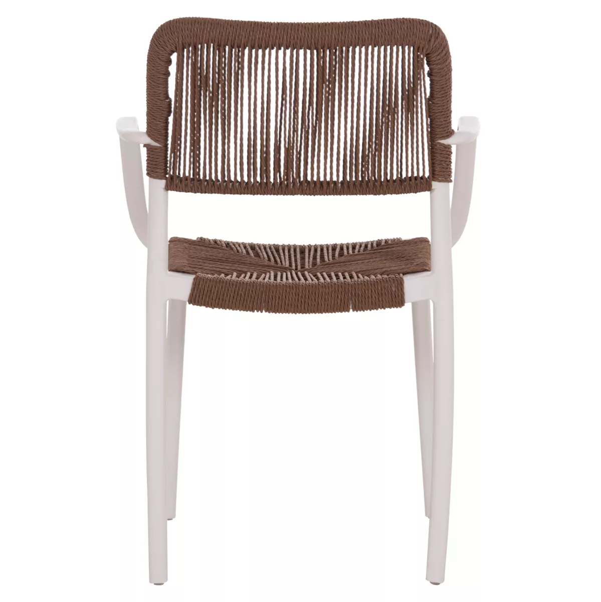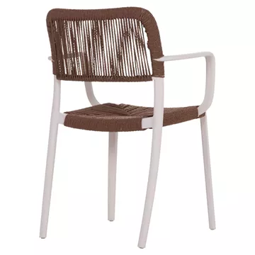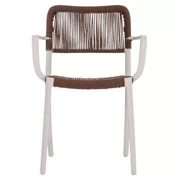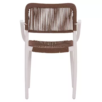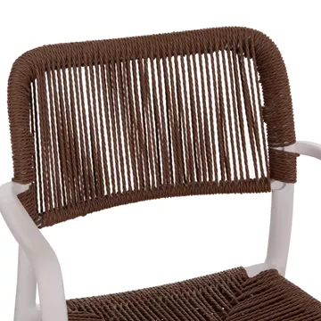 The STRIDER outdoor dining chair combines modern aesthetics and practicality, making it an ideal choice for terraces, gardens and professional outdoor spaces. The durable polypropylene frame in WHITE combines harmoniously with a BROWN rope seat and backrest, offering modern character and comfort.
